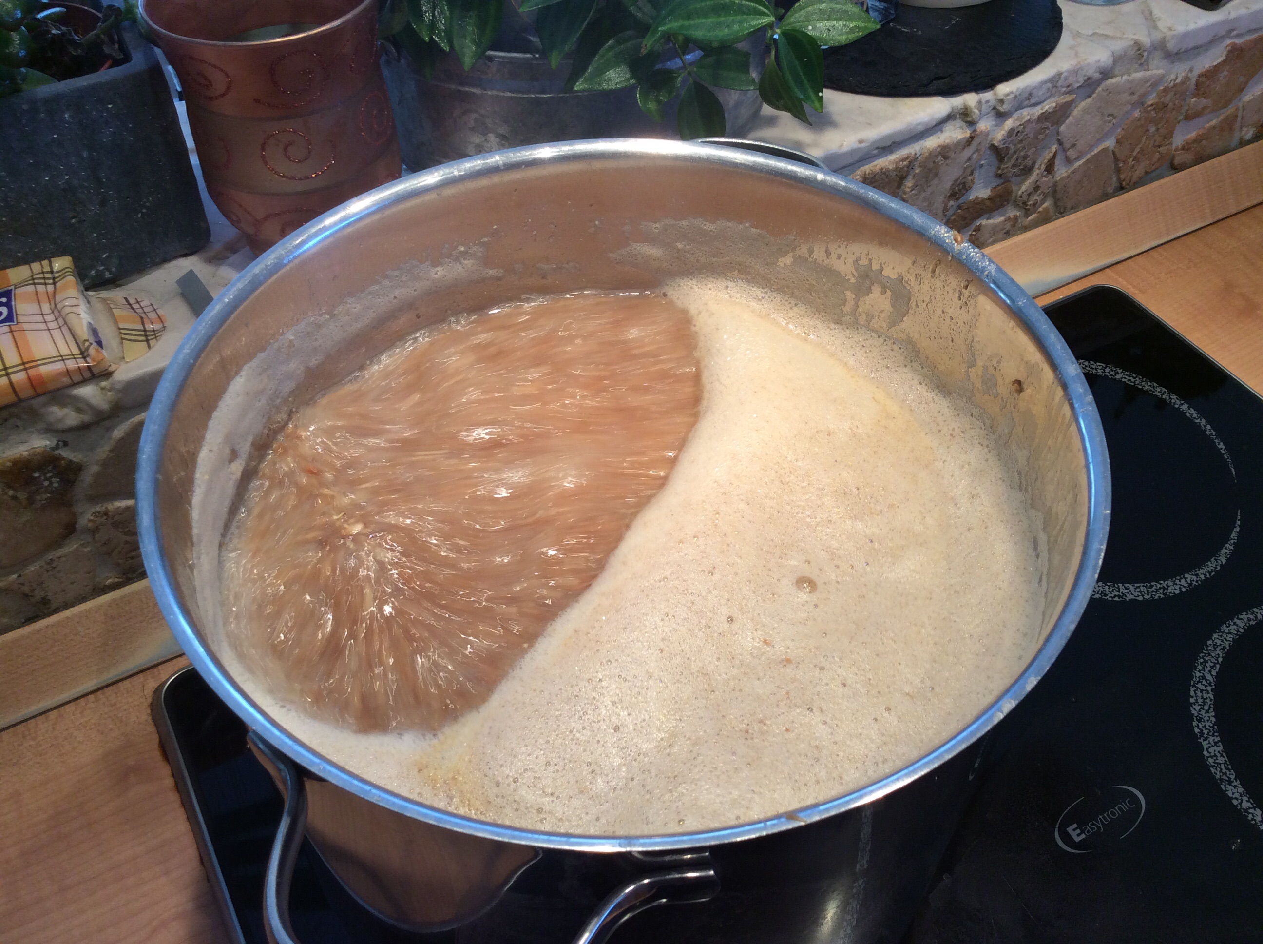 Die Teilmaische kocht auf dem Herd