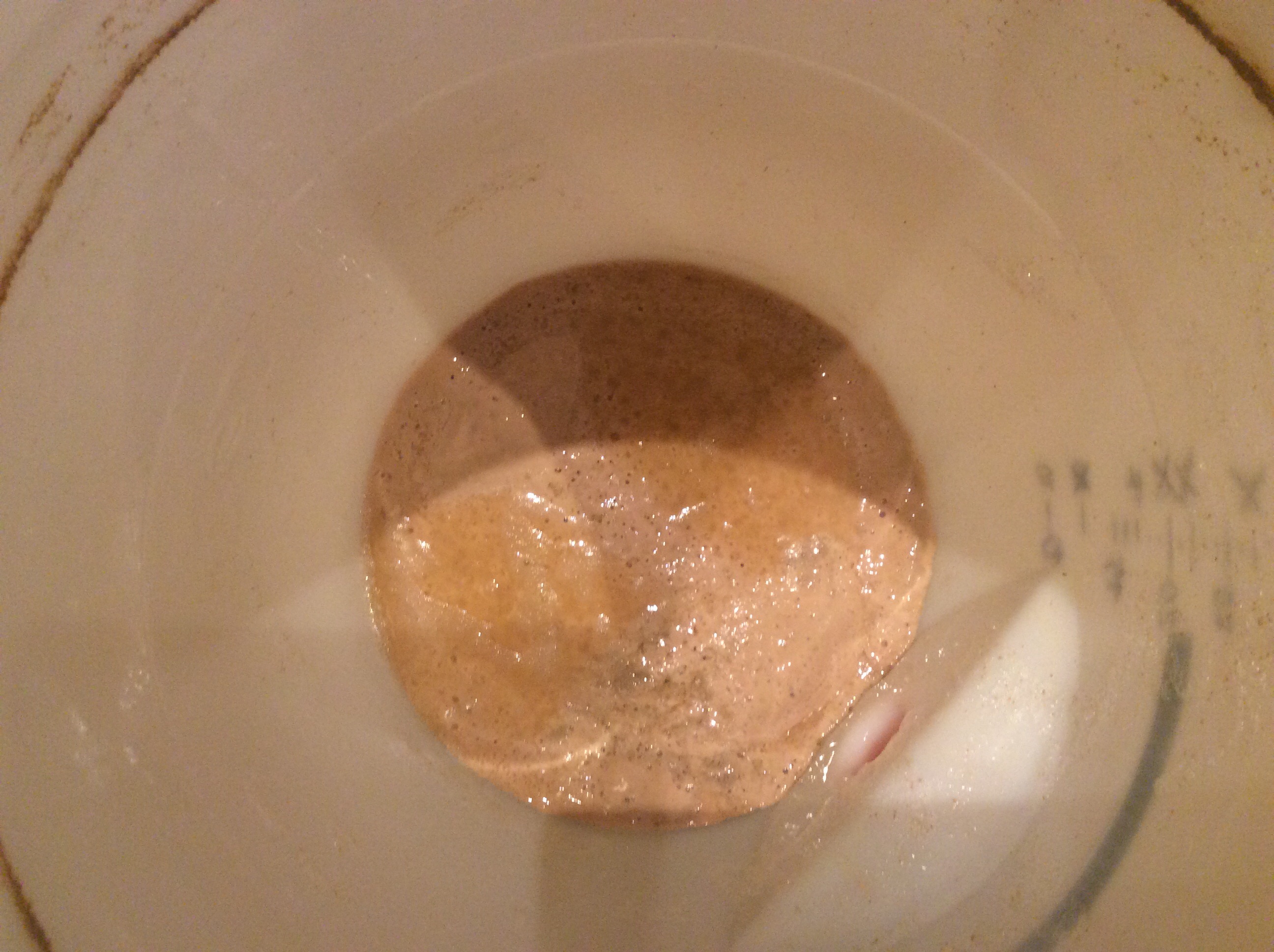 Die Gärung scheint gut angekommen zu sein. Zur Zeit sieht es im Gärfaß so aus: