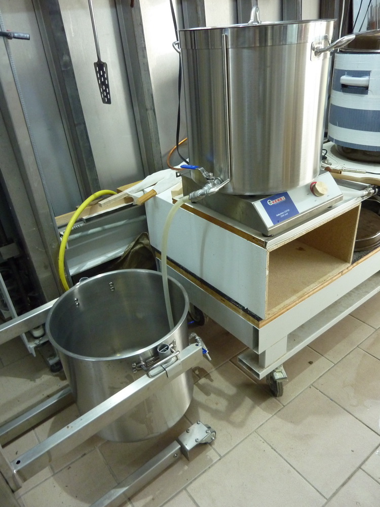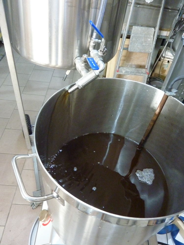 Maischen im EK - Umschöpfen in TP - Kocher saubermachen - in Kocher läutern und direkt mit Kochen beginnen - kühlen mit Spirale und ausschlagen in den Gärbehälter von SS-Brewtech