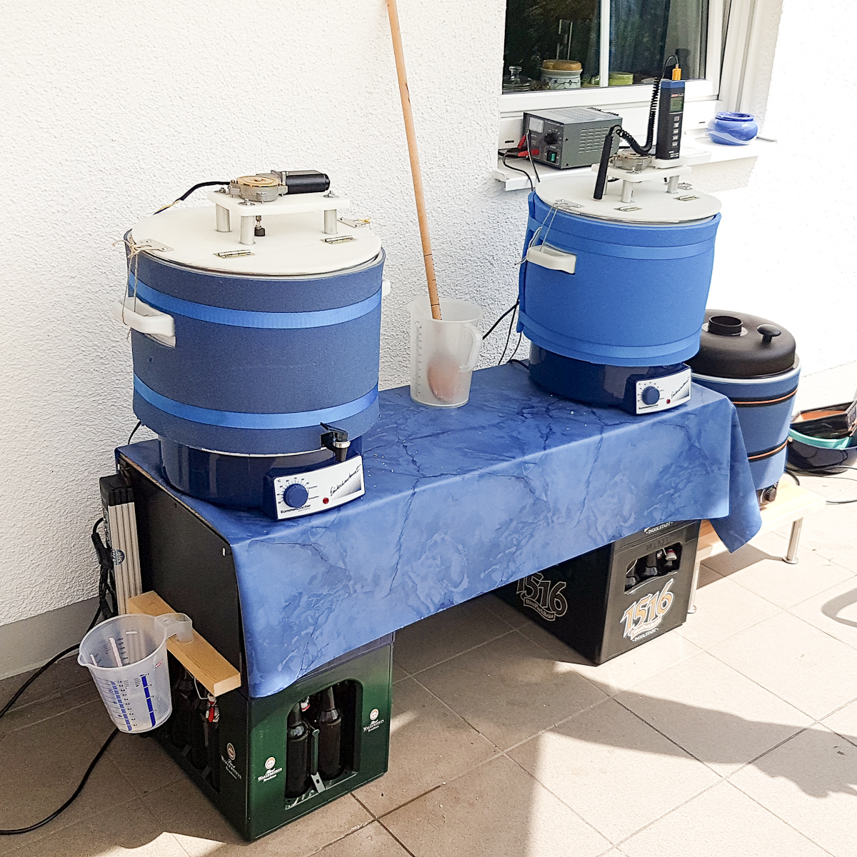 30L-Klasse; 50l Topf, 3.5k Induktion, Thermoport mit Läuterhexe, 2x Edelstahl Gärfaß, 2x Kühlschrank mit Inkbird, NC-Kegs und GDA für Flaschen.