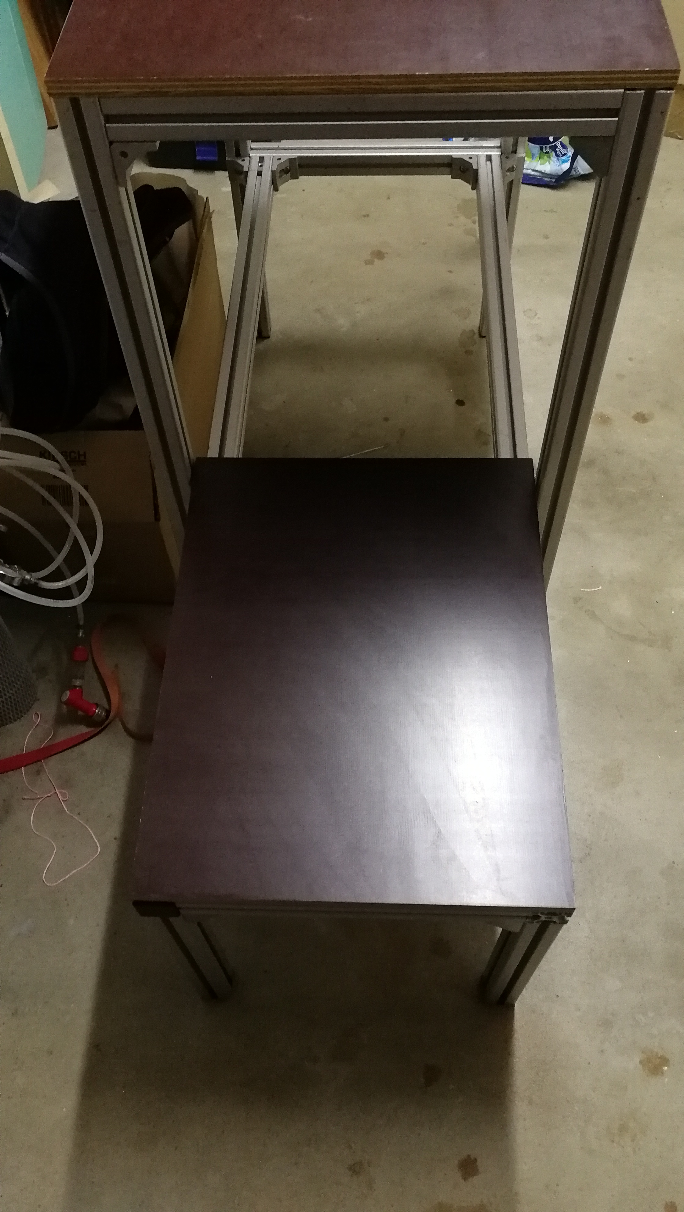 Basis war ein ehemaliges fahrbares Zapfanlagengestell von Hobbybrauern aus der näheren Umgebung, das ich über die Kleinanzeigen gefunden habe - schönen Gruß von dieser Stelle :thumbsup (40mm Alu-Profile, oben war noch ein Spülbecken montiert)