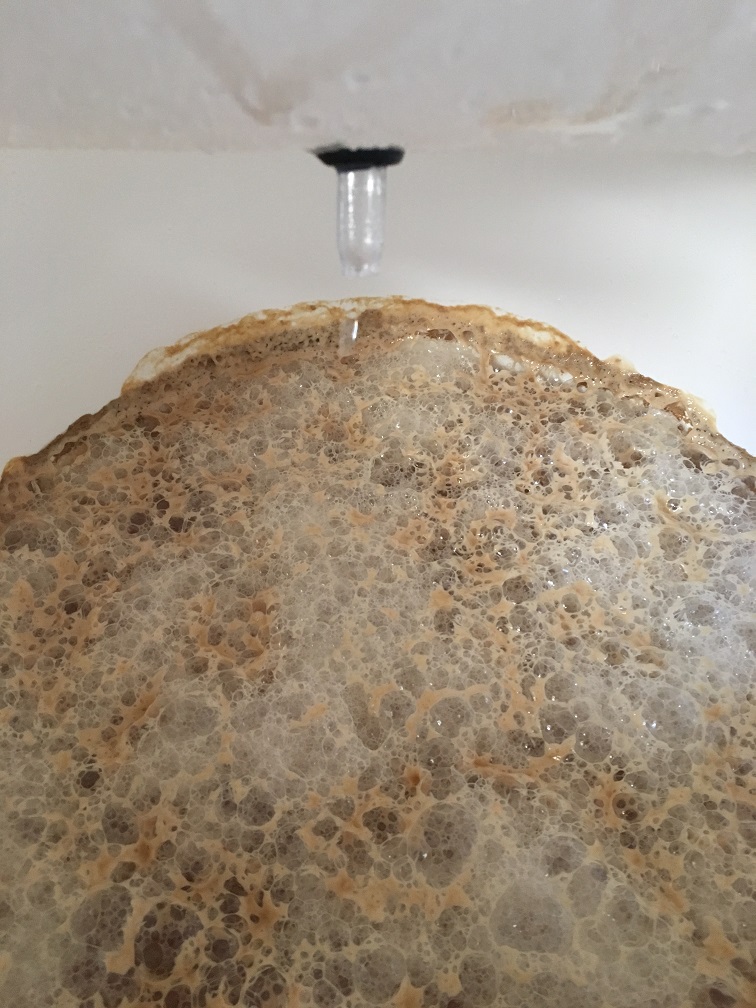 Von meinen vorhergegangenen Suden bin ich es gewöhnt das es gleich gut "blubbert". Hier passiert jedoch garnichts von außen sichtbares. Ich weiß das man nichts auf fehlendes blubbern geben sollte. Jedoch habe ich dennoch mal einen Blick in den Eimer geworfen um sicher zu gehen das es gärt. (Hatte mir eigentlich vorgenommen die ersten 2 Wochen nicht rein zu schauen^^).