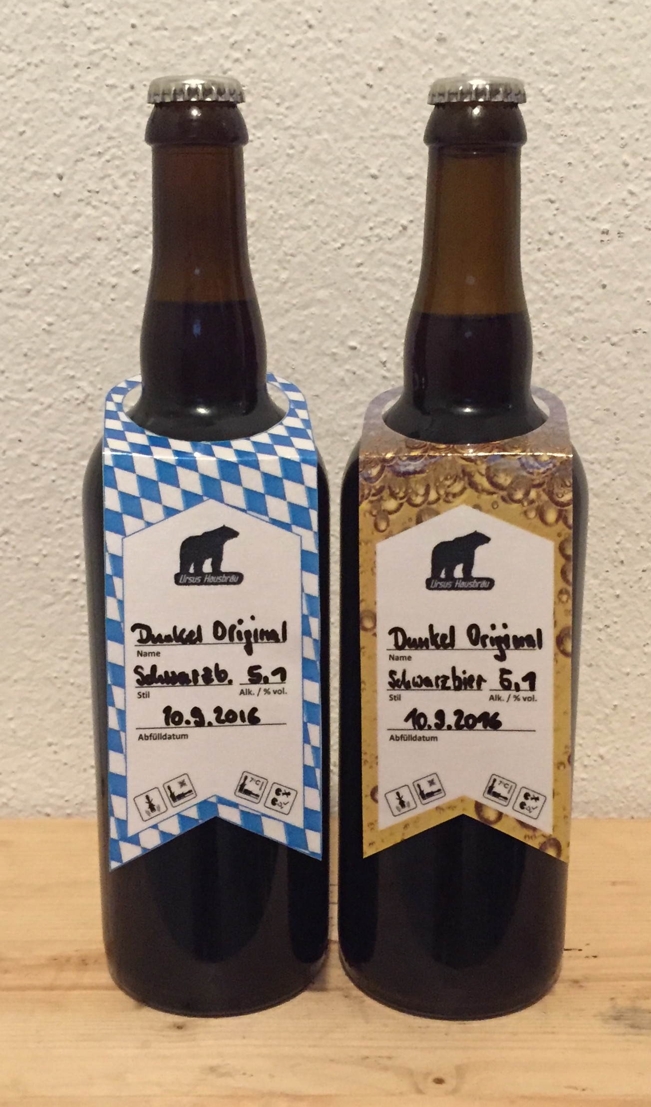 Ausgedruckt per Farblaser auf sogenannter "Elefantenhaut" und mit Milch geklebt. Jeder Sud, der es in meine "Hall of Fame" schafft, bekommt eine Nummer und eine Farbe inkl. passenden Kronkorken.