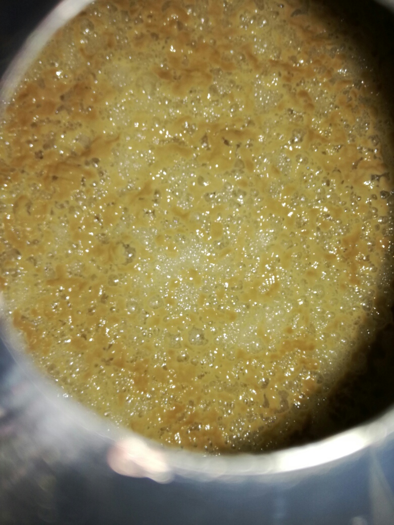 In dem einem Eimer gärt seid letzten Donnerstag ein Oatmeal Stout mit der Notti. Die stürmische Phase ist abgeflacht und es blubbert nur noch ein wenig, aber die Kräuseln sind gut 7cm hoch im Eimer gewesen.