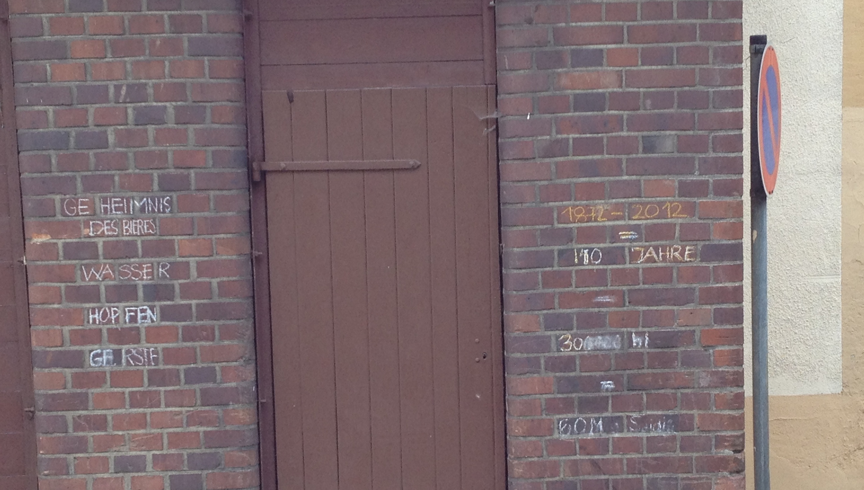An der Mauer ist eine nette Rechnung mit Kreide angeschrieben. Anscheinend ist die Beschriftung beim Jubiläum entstanden: