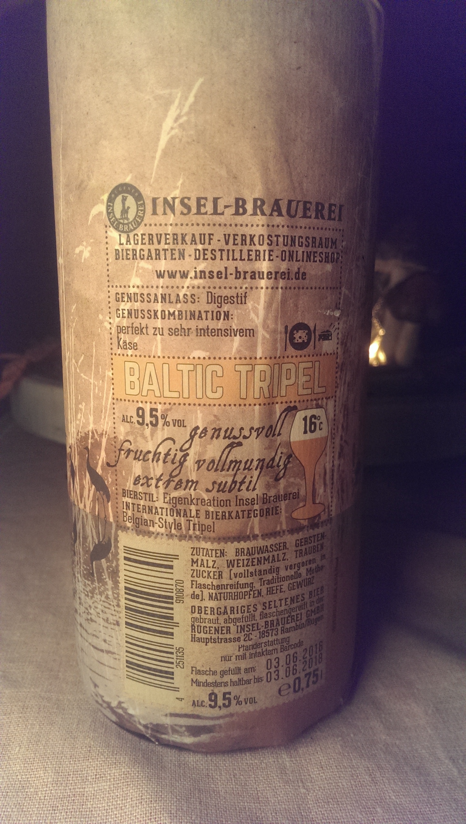Seit 13 Tagen in der Flasche, wollte eins jetzt endlich mal wieder Luft schnappen und andere "Gebinde" von innen befeuchten ... so als Vorreiter für die anderen. Hat seinen Job sehr, sehr gut gemacht. ;-)