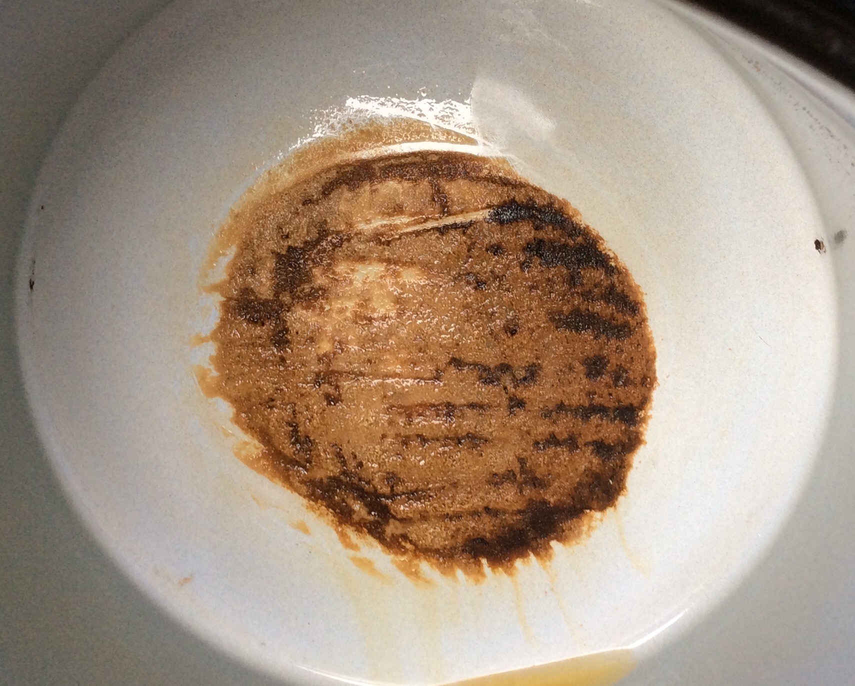 Der Grund siehe Foto. kann ja kaum mehr funktionieren! ich arbeite mit Maischesack und Abstandshalter vom Boden und habe schon fleißig umgerührt, kam aber eben nicht an den Boden. der Belag wirkt wie eine Isolierung. um 3:30 konnte ich nun doch wieder in der Küche den Kochvorgang doch noch vollenden. Das Ergebnis ist gottseidank ohne Brandgeschmack und 13%