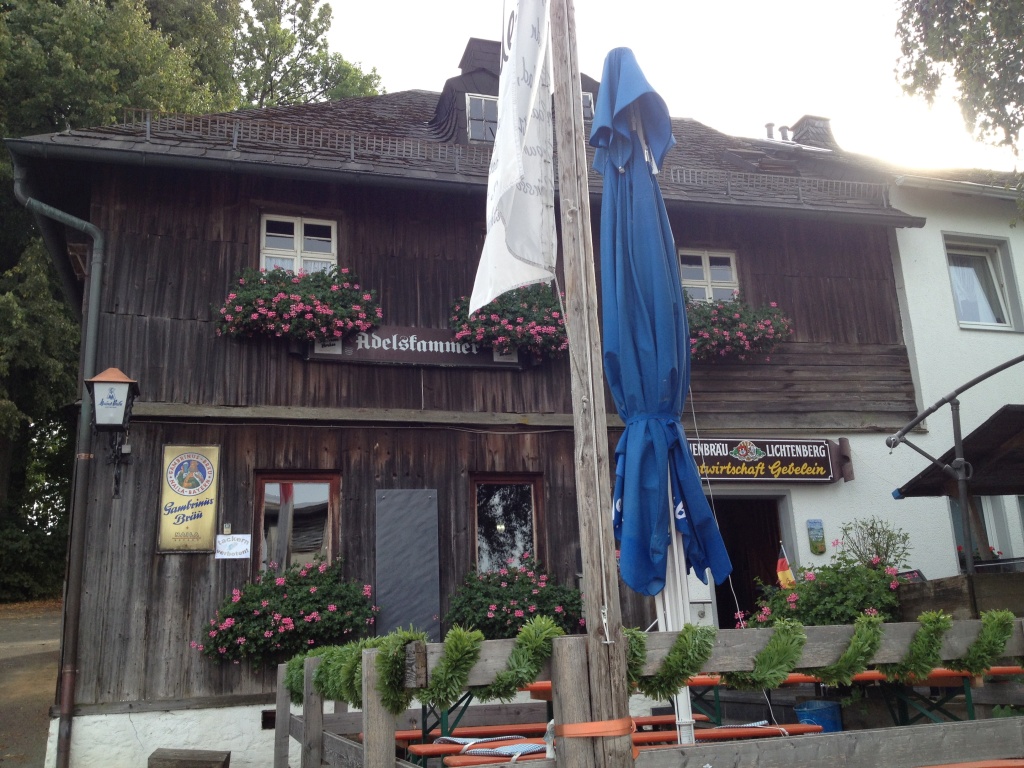 Nach knapp 3 km zu Fuß kamen wir in Carlsgrün zum Wirtshaus Adelskammer. Das hält, was es verspricht. Auf die Frage, was für ein Bier er hat, werden mir z.B. Pils von Scherdel und Meinel sowie das Kellerbier von der neuen Brauerei Budenschuster in Bad Steben vorgeschlagen. Beim Pils kam dann noch die Nachfrage, ob ich es eher herb oder mild möchte. Weil ich herb wollte, wurde das von Scherdel empfohlen. Meine Frau nahm das Kellerbier - und ich später natürlich auch. Das Scherdel Pils ist wirklich herb und sehr lecker. Und das Kellerbier von Budenschuster ist sowas von süffig, einfach klasse!