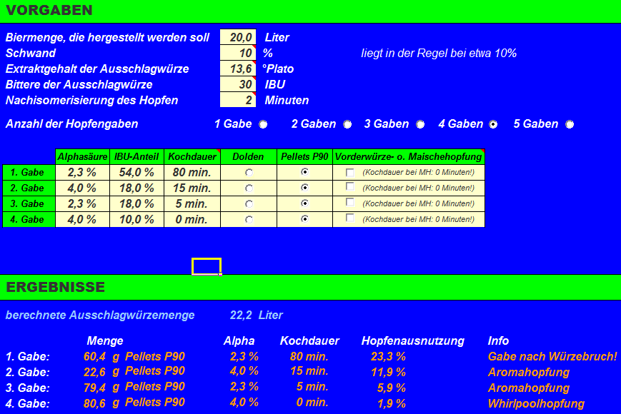 Wenn ich genaue IBUs erreichen möchte so halte ich mich künftig an den Tipp von Boludo und treibe die Bittere gleich zu beginn auf den Zielwert und wenn's trotzdem hopfenbetont sein soll, dann kühle ich nach Kochende zuerst auf unter 80°C und gebe dann noch die Aromahopfung zu respektive mache eine Kalthopfung (stopfen).