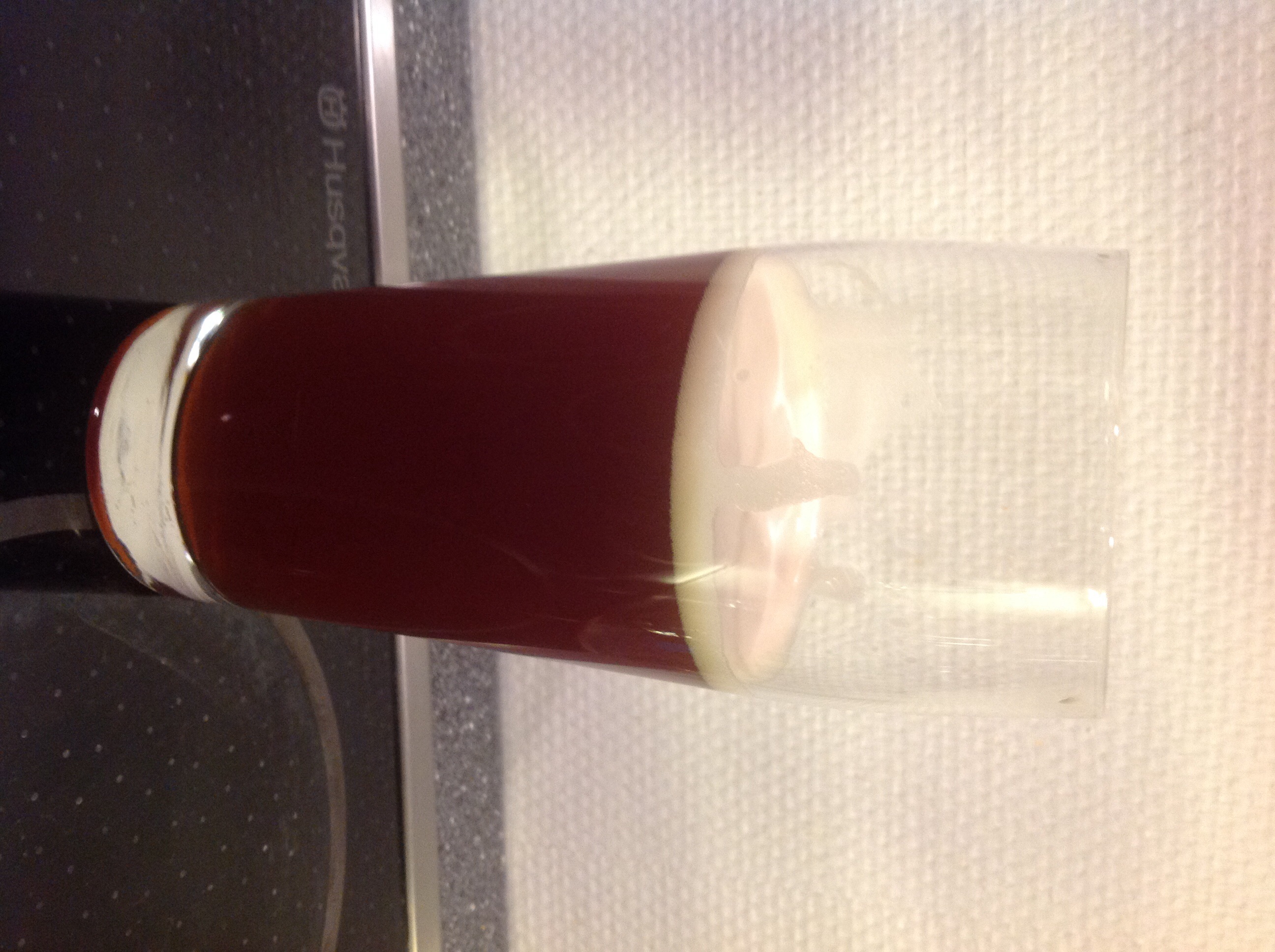 Edit am 30.11.: Nachdem ich vor Anstellen mit 2.5l auf 17° Plato verdünnt hatte, hat die Notti das Ganze auf 3.7°P heruntergezogen. Abgefüllt habe ich letztenendes 18l. Vielleicht sollte ich meine Gefäße nochmal neu auslitern, 1.5L Verlust scheint mir etwas viel, allerdings hatte sich schon eine beeindruckende Hefeschicht gebildet.