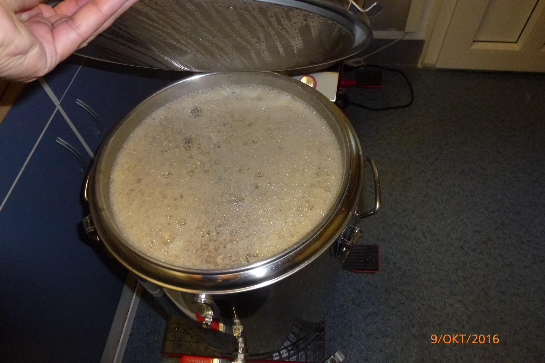 Die Gärung verläuft nach Plan, die Hochkräusen waren am Dienstag/Mittwoch. Jetzt ist es ruhiger. Der EVG lag gestern bei 69 Prozent. Ich lasse aber noch ein paar Tage stehen.
