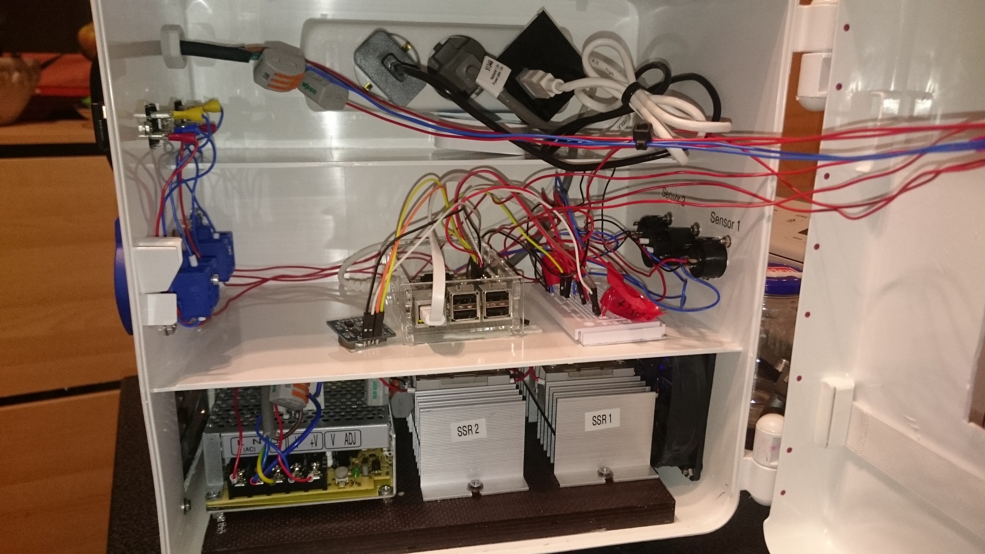 Passt prima ein Pi Zero, Netzteil, Relaiskarte, Steckdose und Buches für T-Fühler rein.