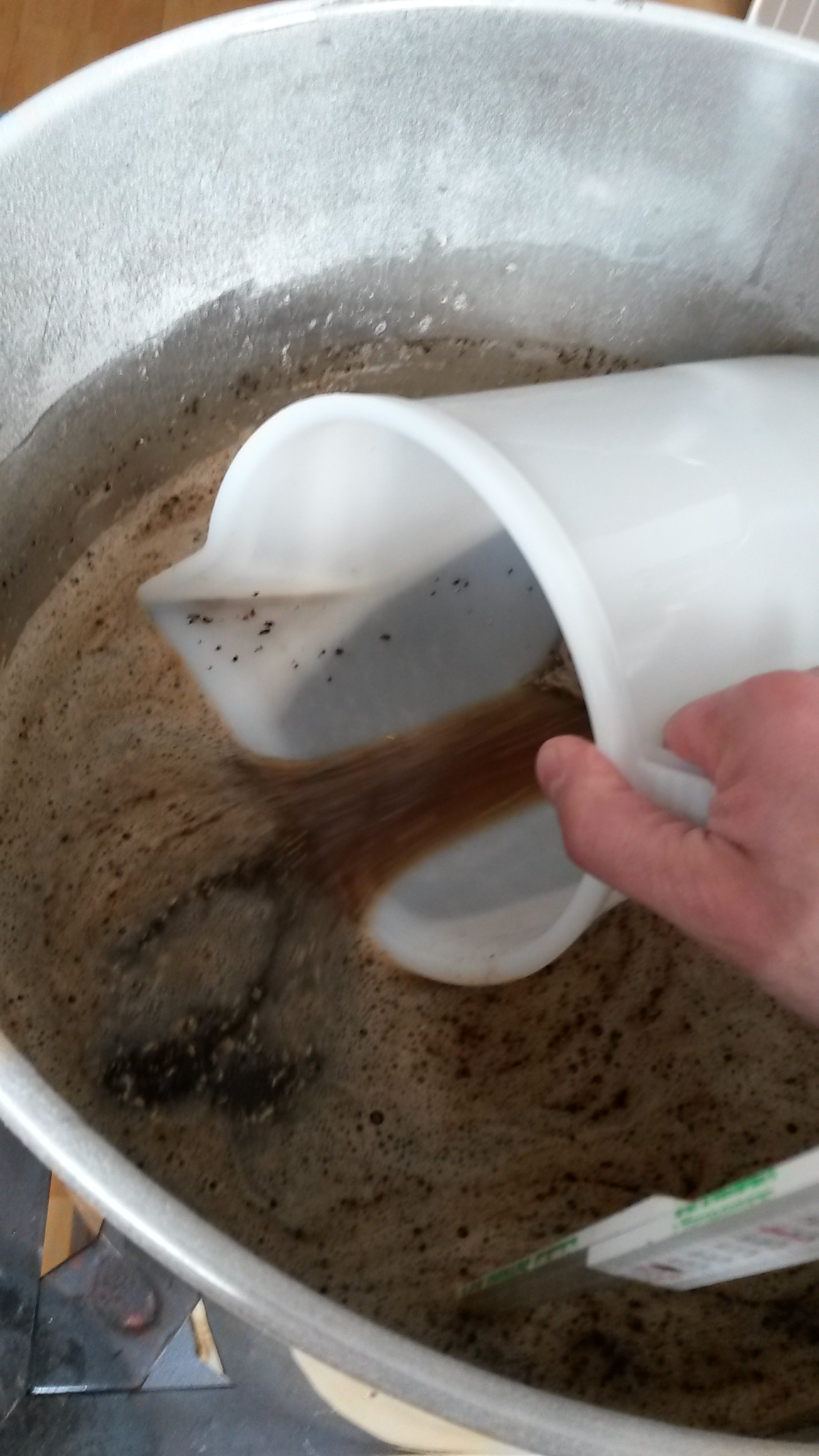 Umschöpfen der Kochmaische in den Thermoport. Temperatur fast getroffen.