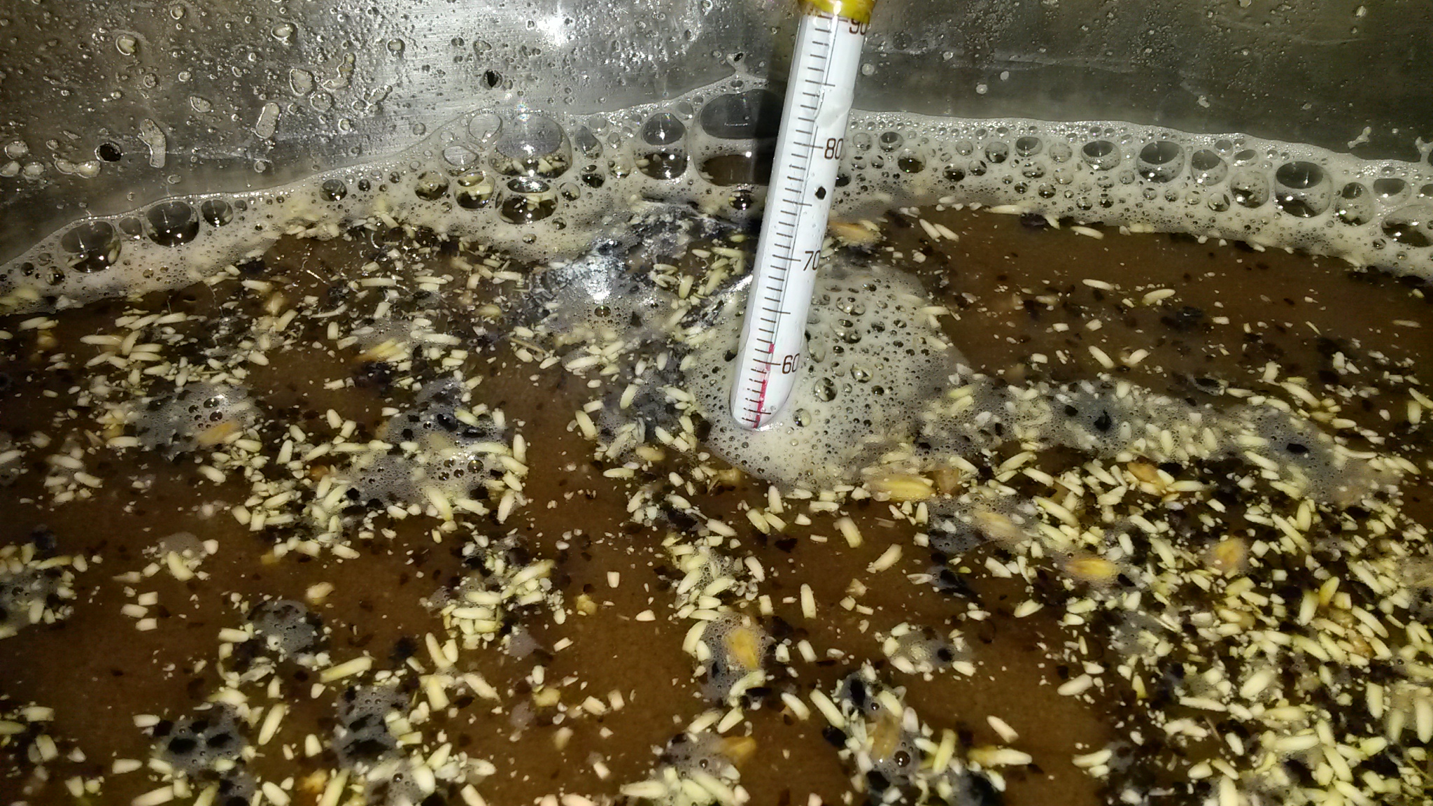 Interessant ist, dass man sehr gut die verschiedenen Schichten des Nachgusses/Würze/Maische beobachten kann. (Helle und dunkle Bereiche).