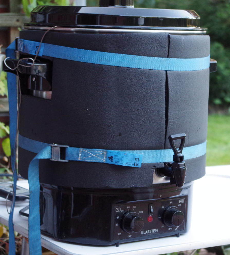 Die Isolierung ist vor allem beim Hopfenkochen mit Einkochern sinnvoll, weil die mit ihrer Leistung nicht immer das wallende Kochen schaffen.