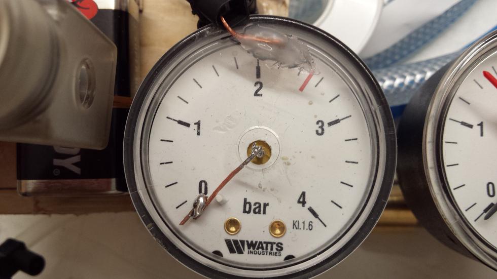 Das zweite Manometer ist zur Kontrolle, das ja das "Schaltmanometer" beim eingestellten Druck blockiert wird. Falls also z.B. die Batterie leer ist, würde man das am Kontroll Manometer erkennen.