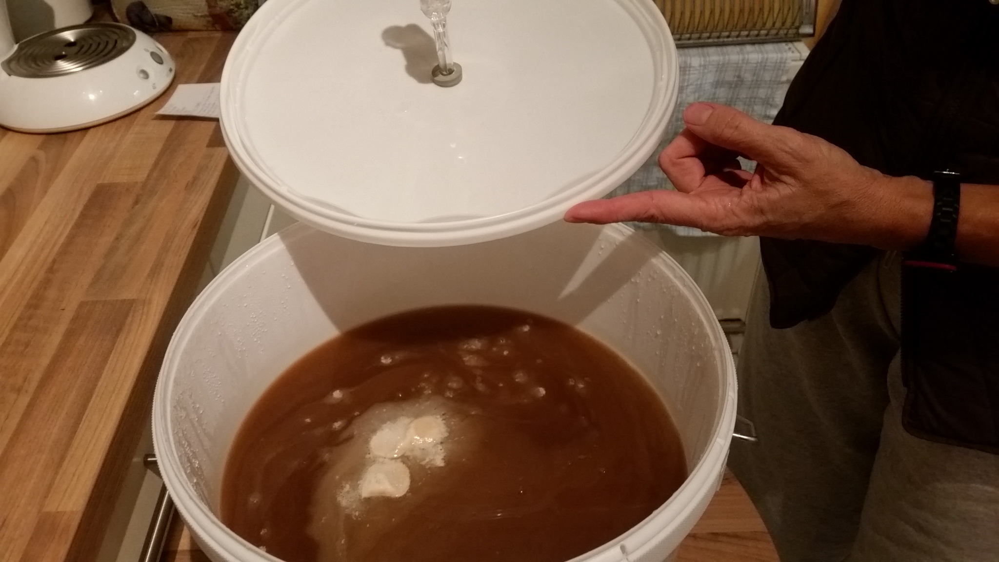 Heute früh, nach 10 Stunden, bereits erste Gärung festgestellt. Es wird.