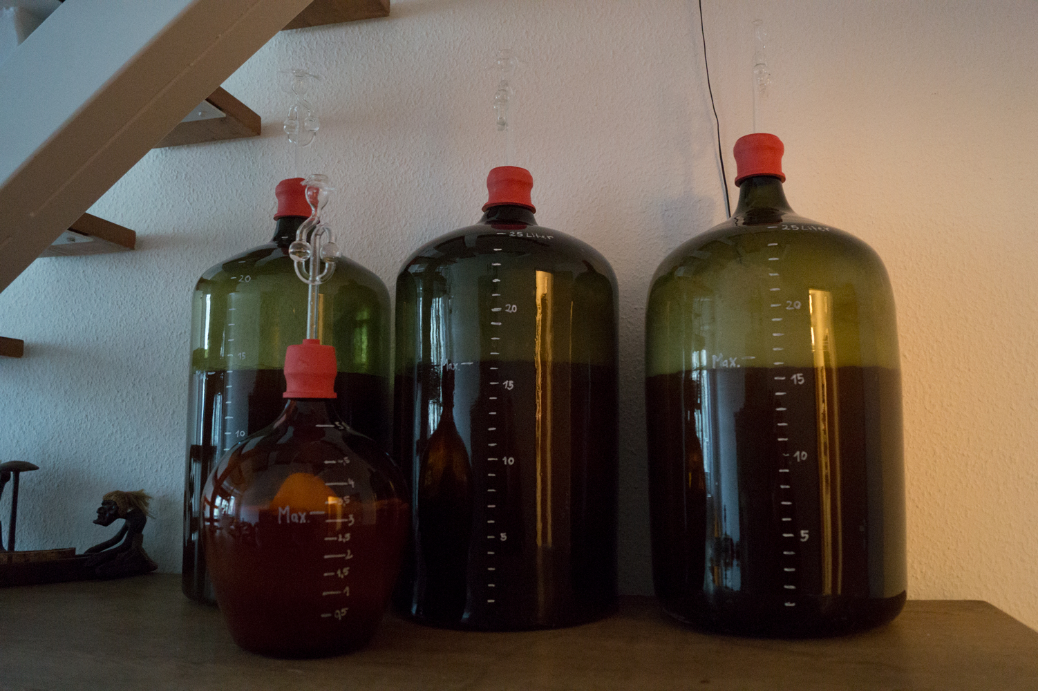 Das ganze lasse ich dann übernacht abkühlen, um dann den Sud am nächsten Tag in meinen Gärballons mit unterschiedlichen Hefen anzustellen.
