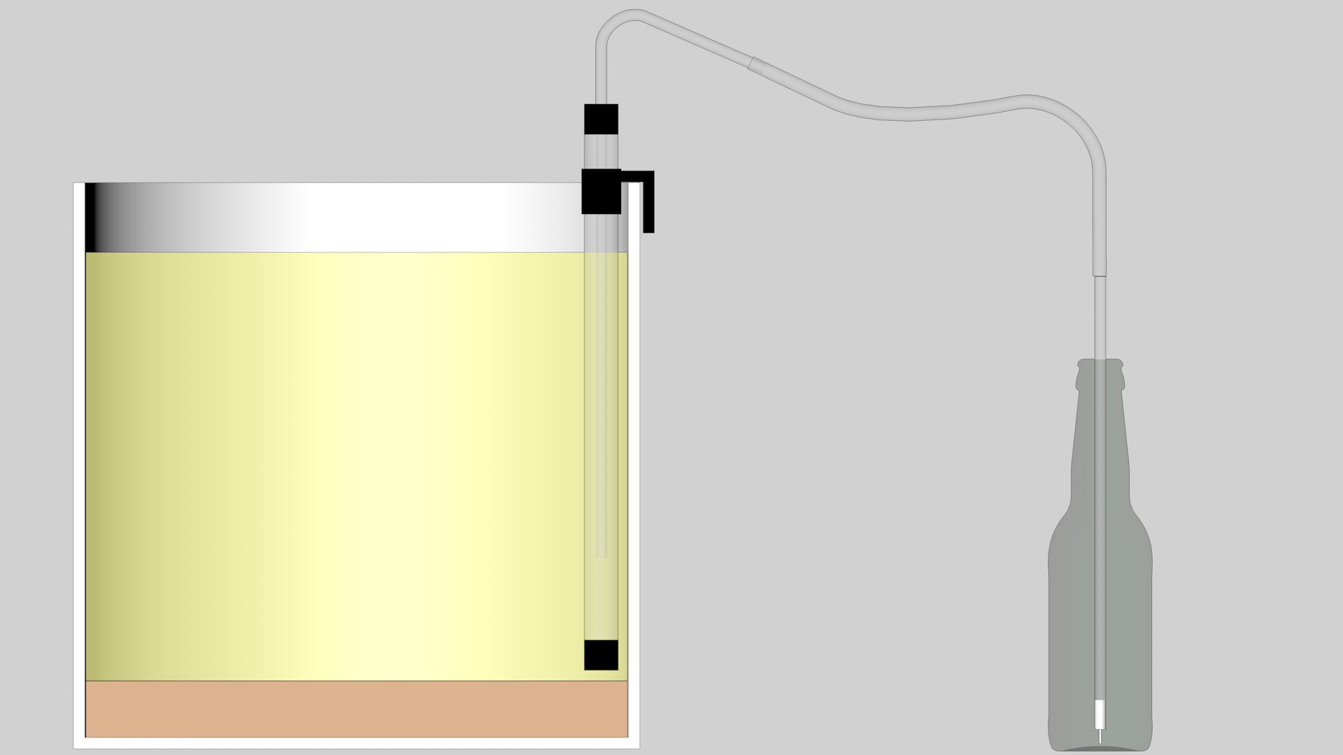 Flasche zu Flasche umsetzen und abfüllen. Das Gärfaß muss natürlich höher stehen als in meiner Skizze.