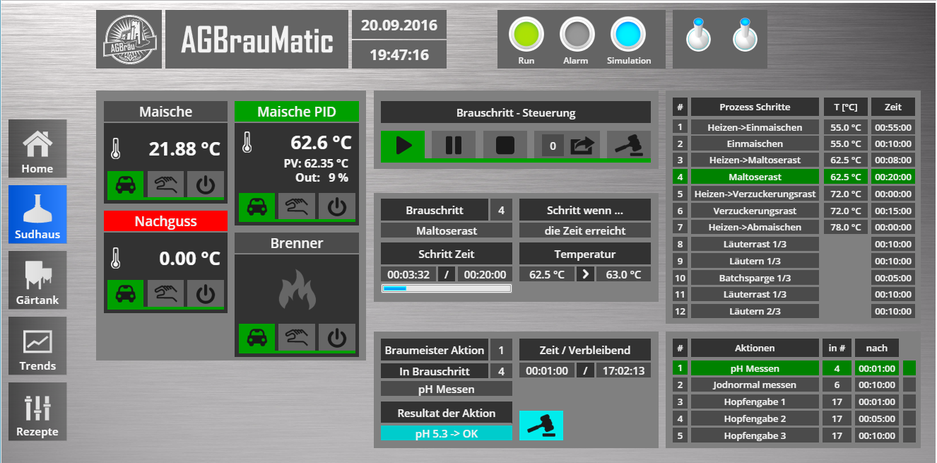 Ich selber steuere meine Anlage (zumindest den Maischvorgang) mit Hilfe von LabVIEW und zwei Microcontrollern.
