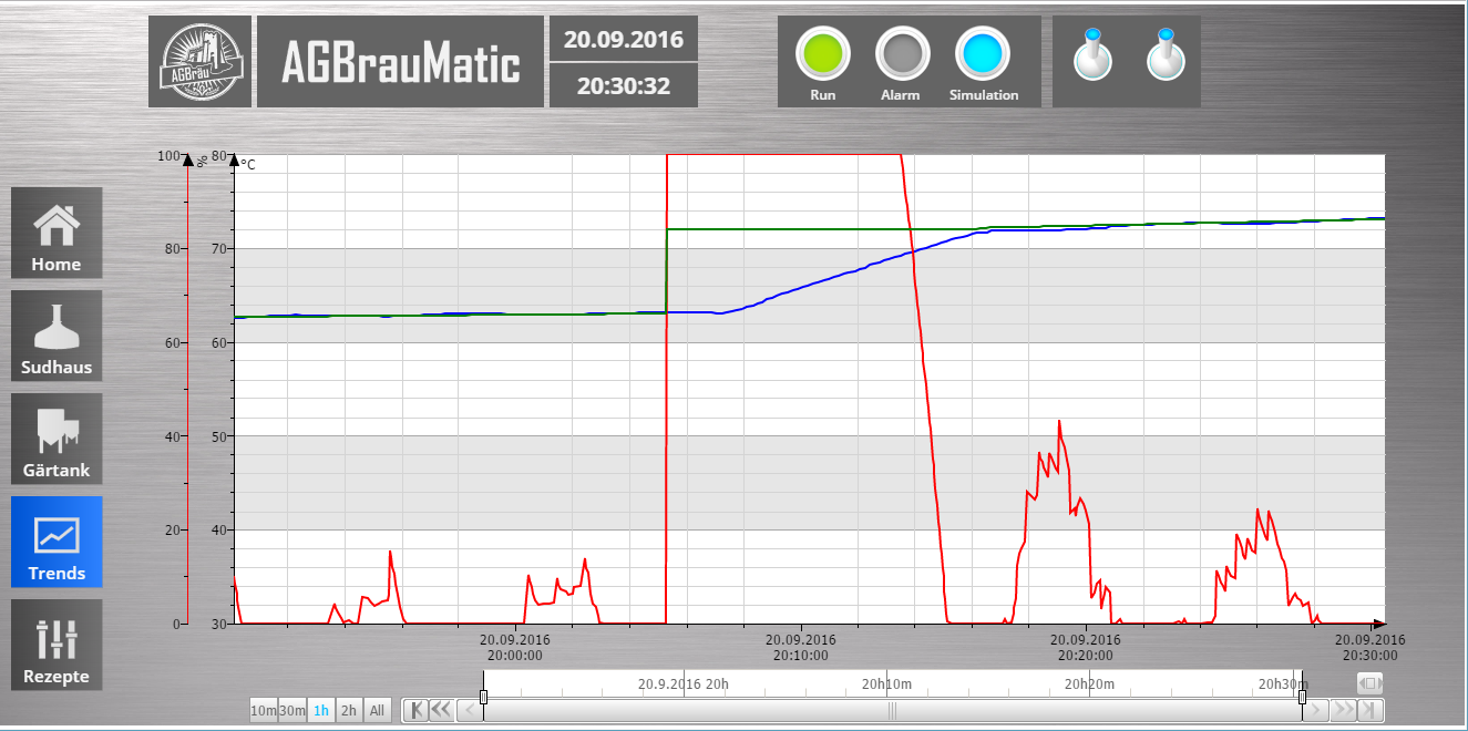 - Maischesimulation für PID Parameter Tests (Streckensimulation, bei mir z.B. Totzeit von 1-2 min) ✔