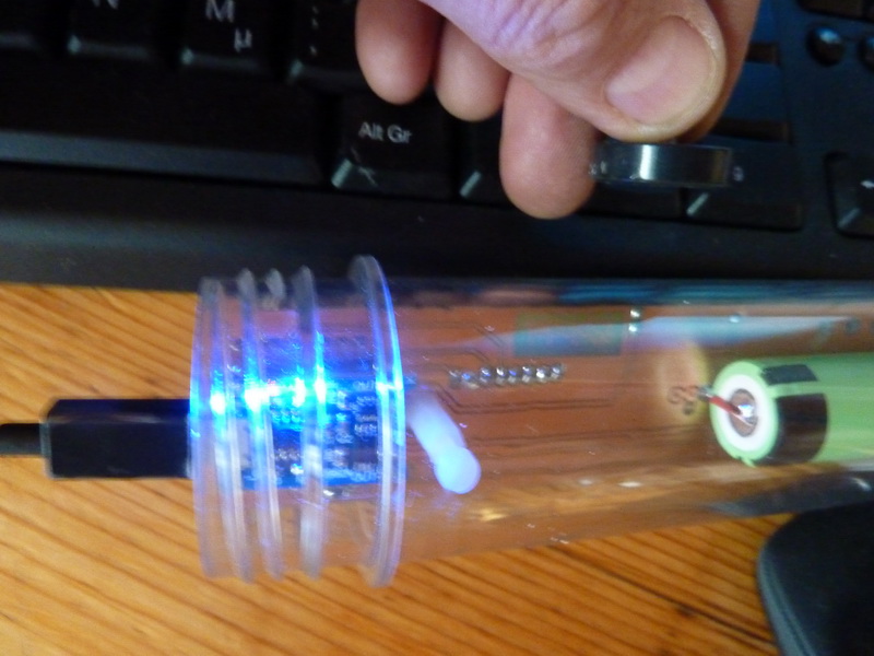 Es ist ein Reed-Öffner der den Akku völlig wegschaltet -siehe Led-Farbwechsel von rot zu blau.