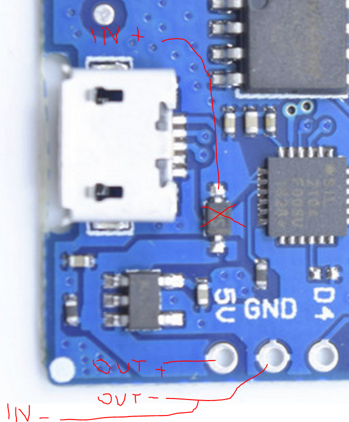 Da sollte ich die Diode im Wemos doch drin lassen können , denn durch den zusätzlichen Schaltregler fliesst garantiert nix zurück in die Batterie ?