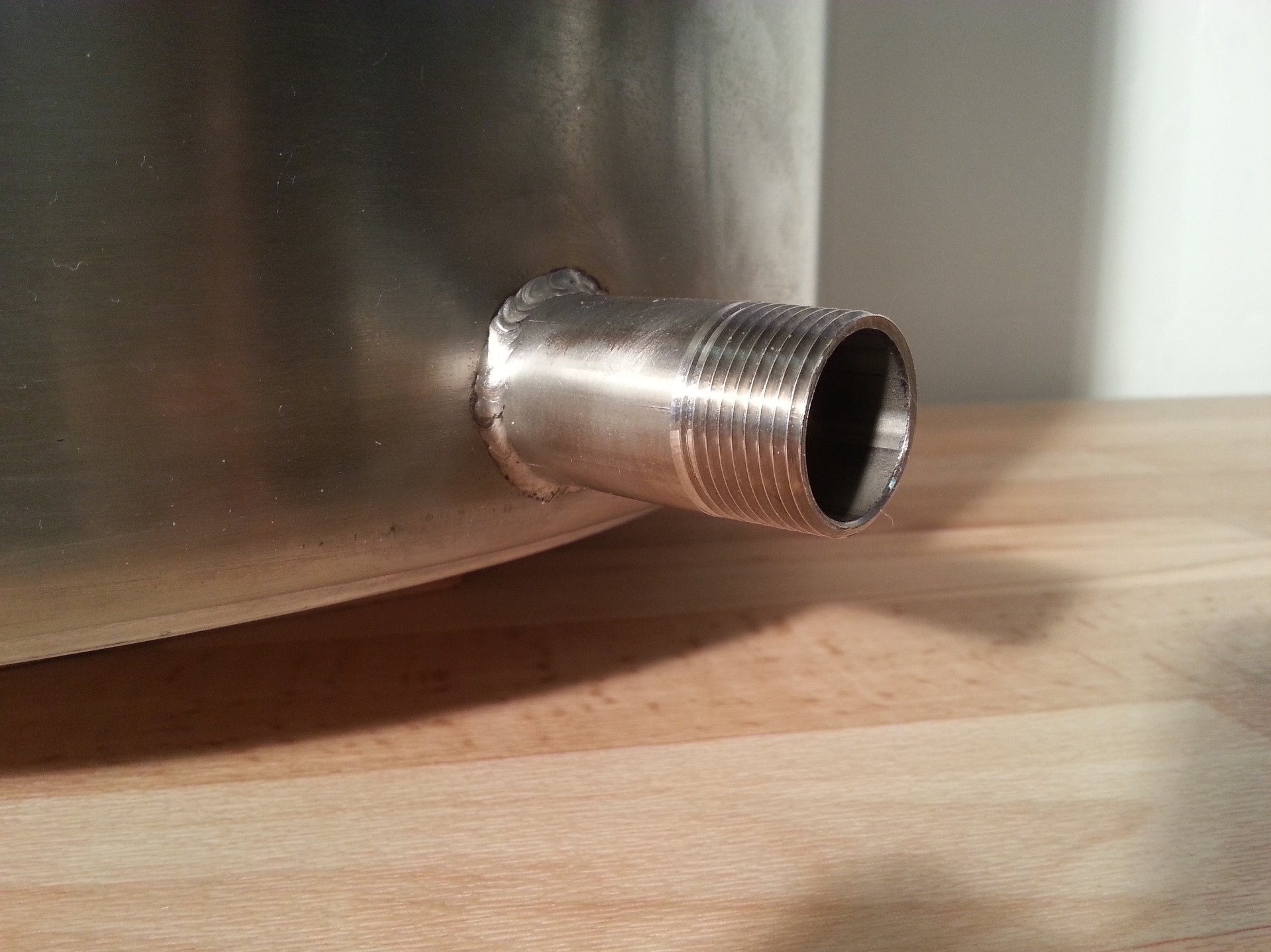 so sieht die Naht an meinem 100L Schengler aus. 1 1/4" Anschweißnippel