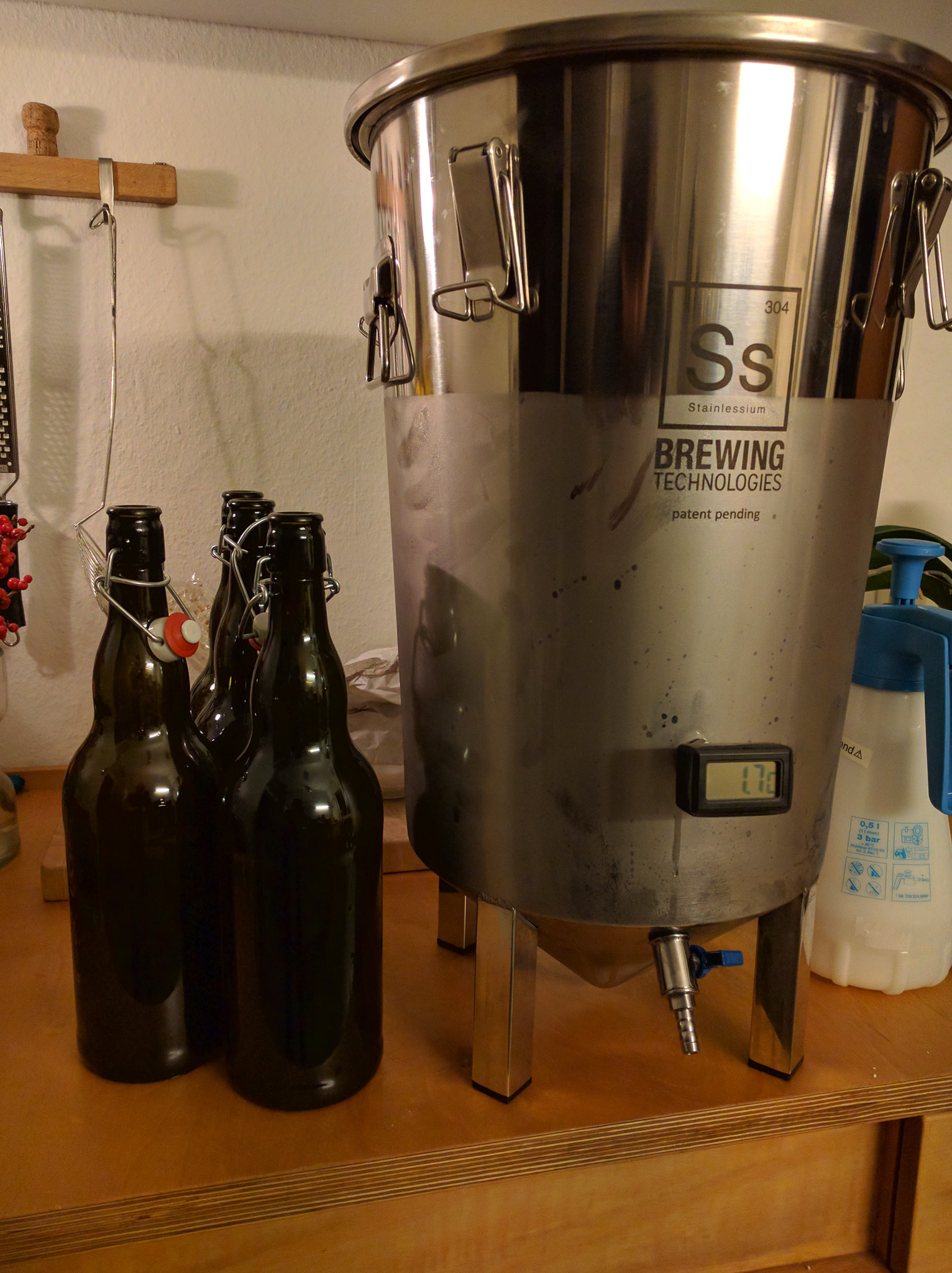Angefangen habe ich mit einem 25l Einkochtopf auf dem Gasherd, mittlerweile besitze ich dazu noch einen schicken 38l SS Brew Kettle und einen passenden 30l Brewbucket Fermenter. Als leidenschaftlicher ITler darf bei mir natürlich auch der Technik-Faktor nicht zu kurz kommen, plane ich meine Brautage mit dem Kleinen Brauhelfer, benutze einen Raspi mit Craftbeerpi für die Temperatur- und Zeitmessung während des Maischens, im nächsten Jahr kommt dann vielleicht noch die eine oder andere Hendi dazu. Die Petlinge für die iSpindel liegen auch schon im Schrank ;-)