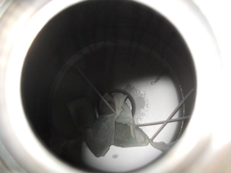 beim ersten Versuch gingen die Säckchen, die ich mit Kabelbinder am Steigrohr befestigt habe nicht durch die Öffnung. Mist!!