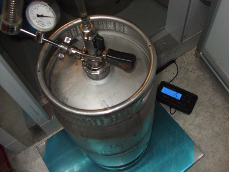 Dann wurden rund 22 Liter Pils vom 100er mittels Spundapparaturkontrolle in das 25er KEg umgedrückt. Die Menge wurde mittels Waage festgehalten. Siehe Anzeige unten.