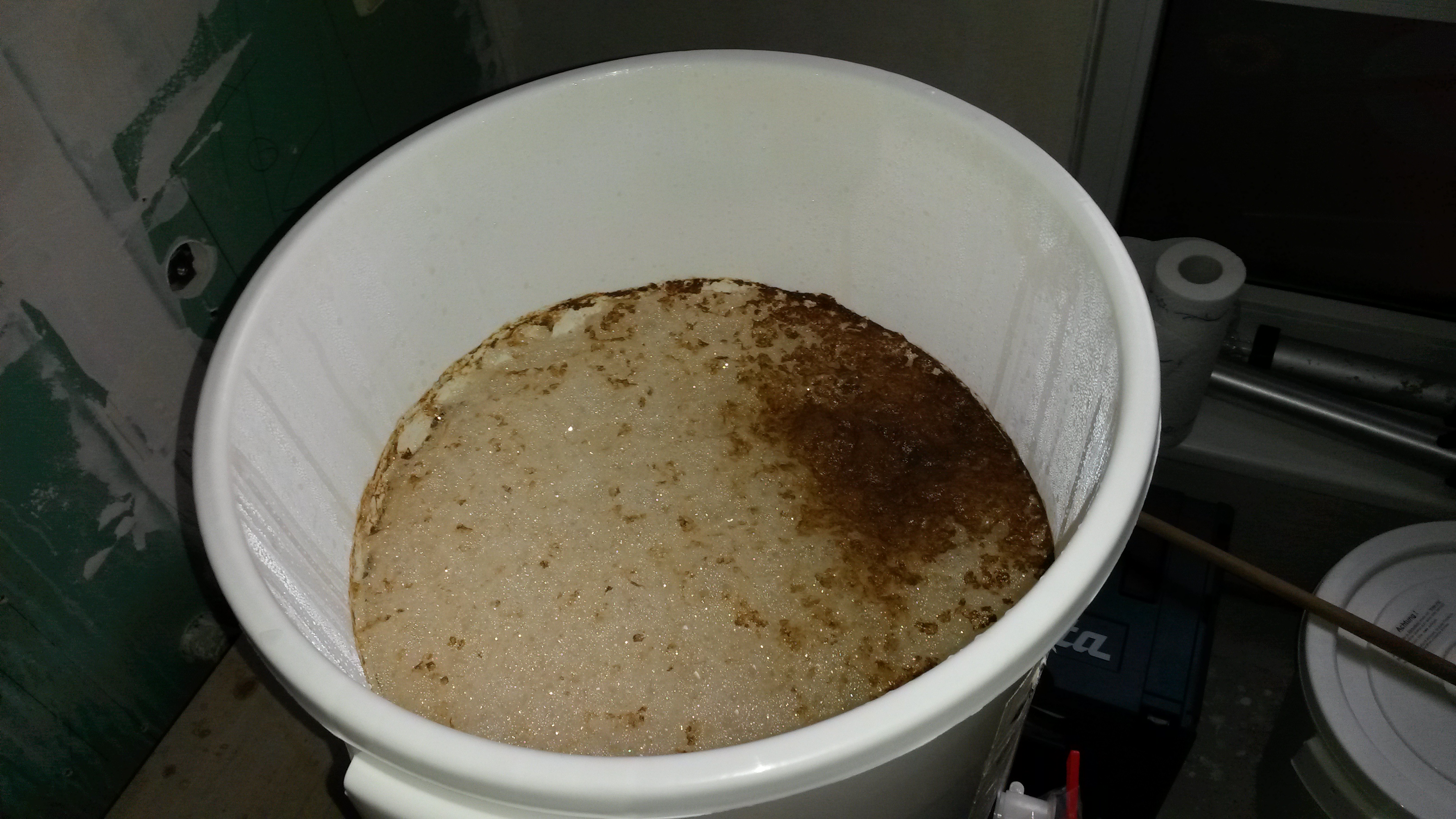 Der Nachguss soll laut Rezept 18 Liter betragen, ich bin mir aber nicht sicher, ob das am Ende wieder in meinen Einkocher mit 25 L Volumen passt. :redhead