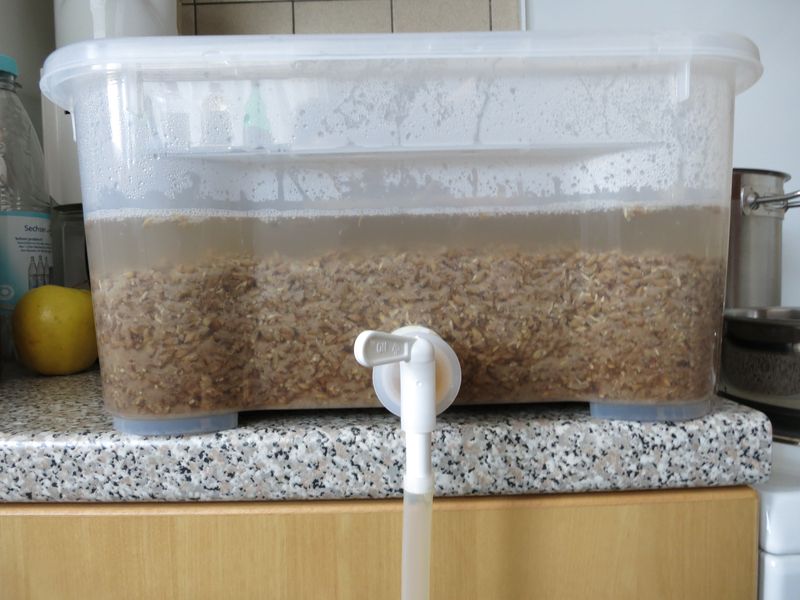 Ich hätte auch gerne diese Clearbox in der 13 oder 20 Liter-Variante zum Läutern verwendet, aber die sind von der Form her eher unpraktisch. Ich fürchte, da bekomme ich mit meinen 2-3kg Malz gerade mal 5cm Treber hin. Wenn ich das richtig gelesen habe, ist das zu niedrig.
