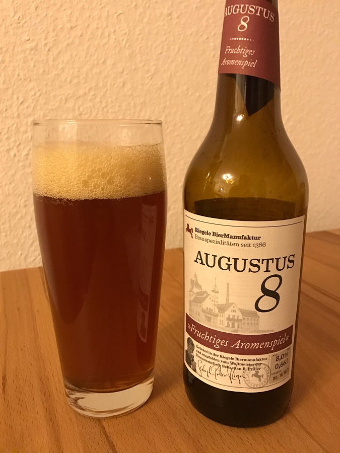 Das letzte Bier aus meiner kleinen Überraschungskiste. Die 50 IBUs kommen nicht als nachhängende Bittere daher, sondern als ein angenehm grasig mildes Hopfenaroma. Ein sehr angenehmes Bierchen mit einer betonfesten Hopfenblume.