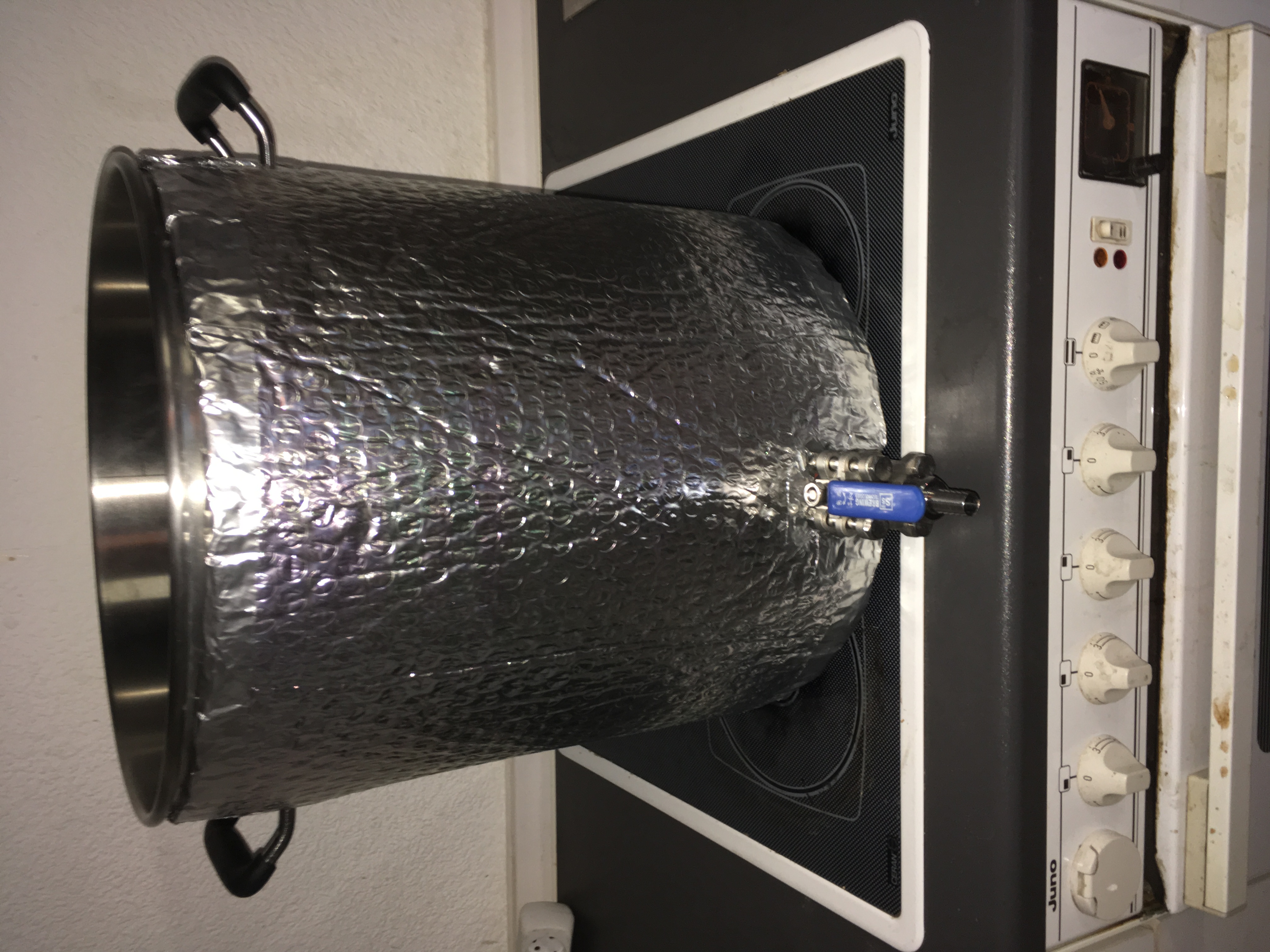 Mag sein, dass das alles zu viel des Guten ist und die Aluisolierung und der Blumenkübelüberzug ausreicht, aber das werde ich sehen, wenn ich es demnächst im Echtbetrieb ausprobiere. Ich beheize mit Induktion und gehe davon aus, dass die Isolierung keinen Schaden nimmt.