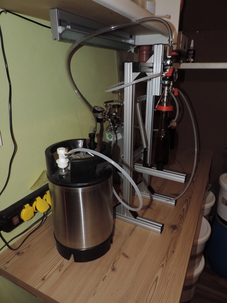 Es ist schon richtig, drei Hähne sind kein Problem, insbesondere weil man den Ablasshahn permanent etwas offen lassen kann, also eigentlich nur Gas und Bier bedienen muß. Die Öffnung des Ablasshahns musste aber durch Feintuning bestimmt werden. Trotzdem und erschwerend für mich als Abfüll Anfänger gab es schon einige interessante Erlebnisse.