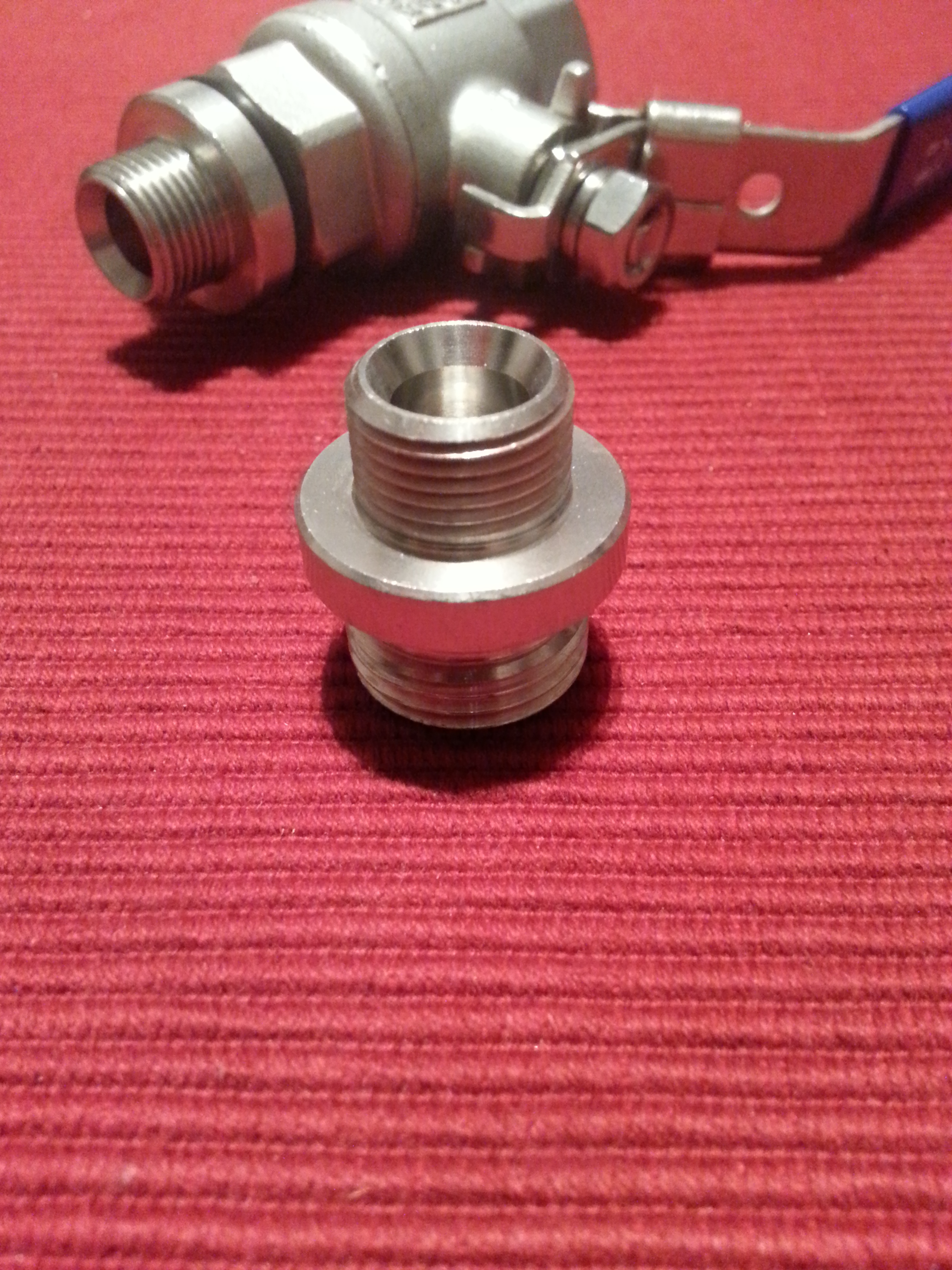 So was hier zum Beispiel. Die Gewinde sind nicht konisch, genau wie bei dem Messingteil und man hat genug Anpressfläche für die Dichtung.