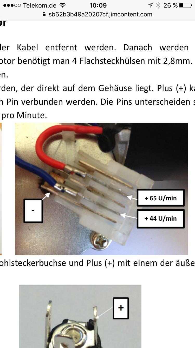 Jawoll !! Dat Ding löpp !!! Das Problem war das es ein anderer Motor ist als in der brauhardware Beschreibung , bei dem vw Motor in der Beschreibung sitzt Masse direkt oben drauf und ist leicht zu erkennen . Bei meinem Motor ist das aber alles aus Plastik und ist abnehmbar , praktisch ist es wie ne schutzkappe . Die musste ich entfernen um zu sehen welche pins für Masse sind . Dann lief er zuerst mit dem Uhrzeiger Sinn und nach ein paar mal umstecken dann entgegen dem Uhrzeiger Sinn