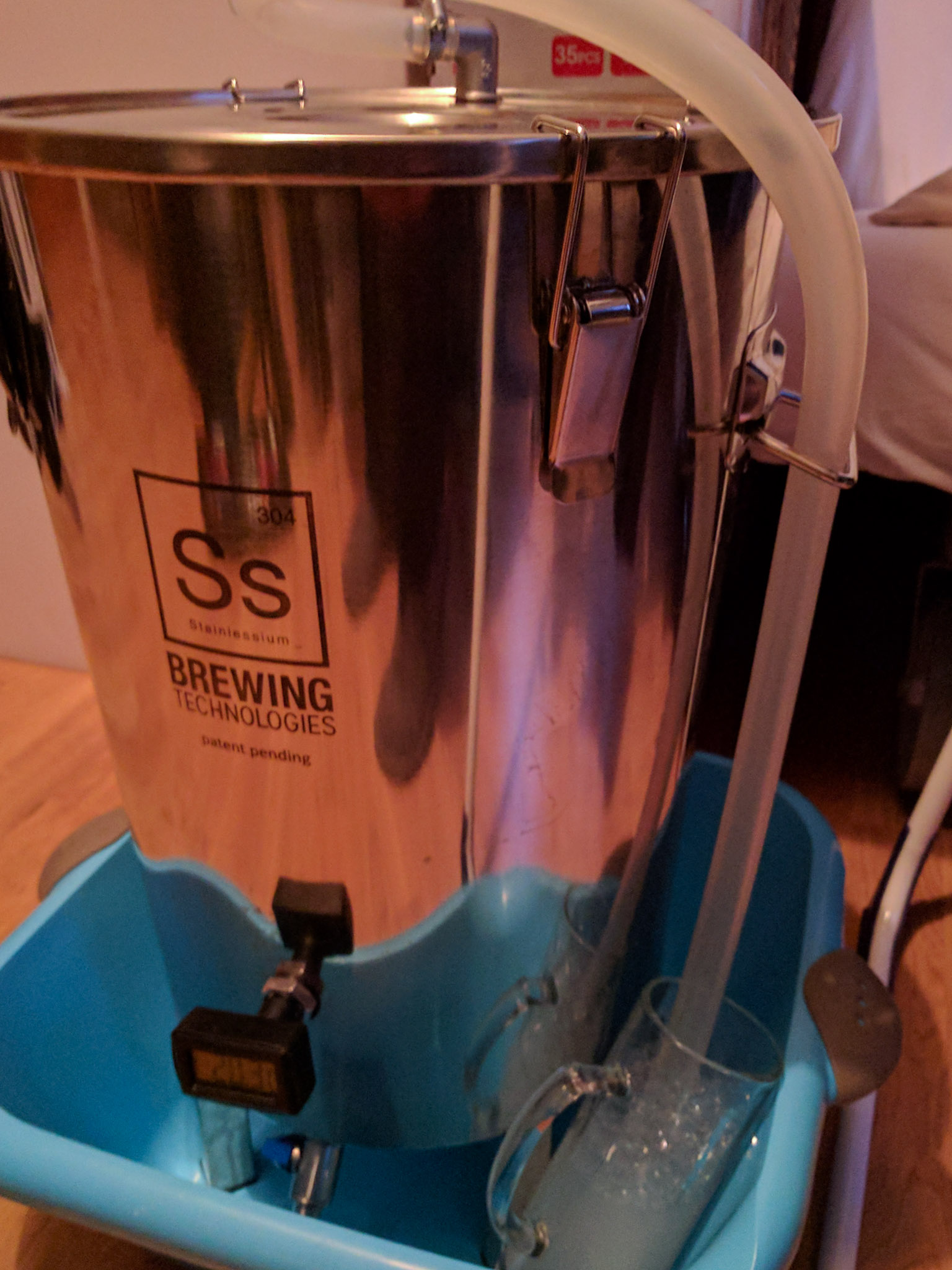 Friedliches Geblubber am nächsten Abend. Diesmal habe ich in Erwartung von stürmischer Gärung statt Gärspund meinen Blow-Off Schlauch angebracht, war dann aber rückblickend doch nicht nötig, kein Überschäumen zu beobachten.