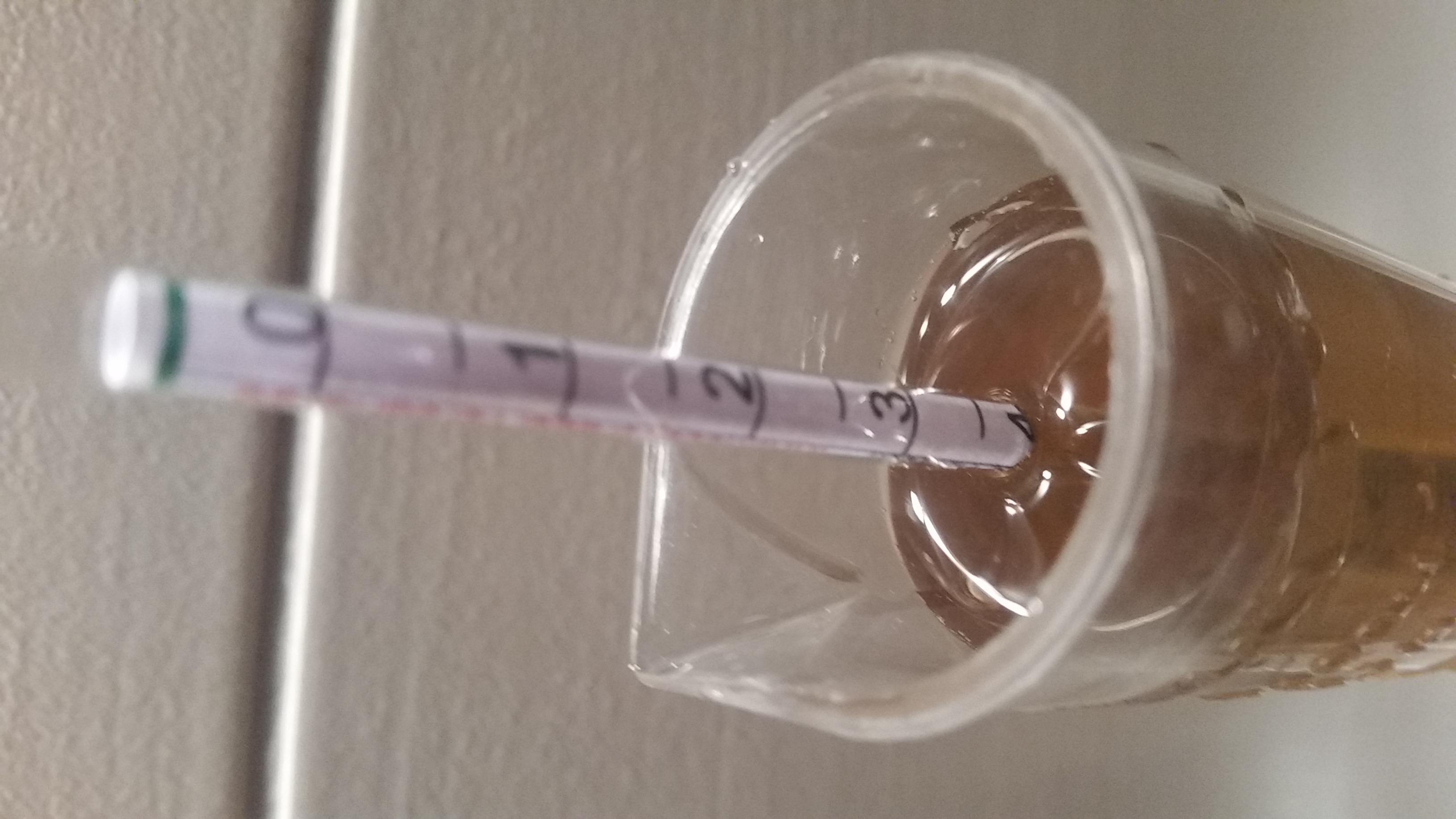 Also Bier mal in den Gärbehälter zum Abfüllen geschlaucht und dann im neuen Gärbehälter nochmal eine Spindelprobe gezogen, da es mir keine Ruhe gelassen hat.