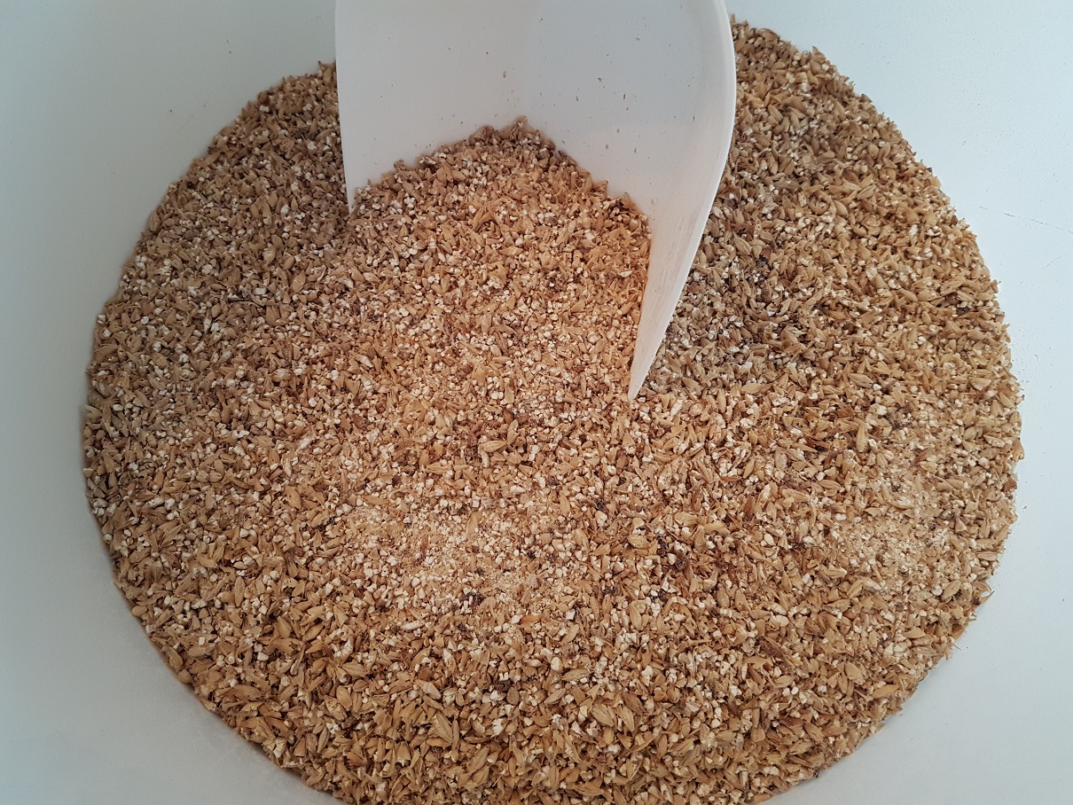 Malz mit 1,5mm Walzenabstand geschrotet (werde ich in Zukunft etwas feiner Schroten)