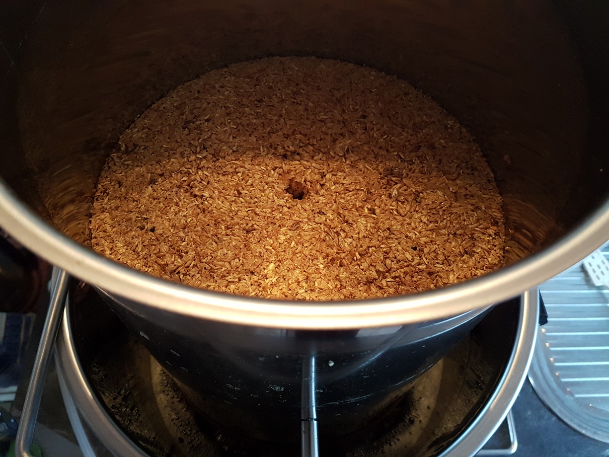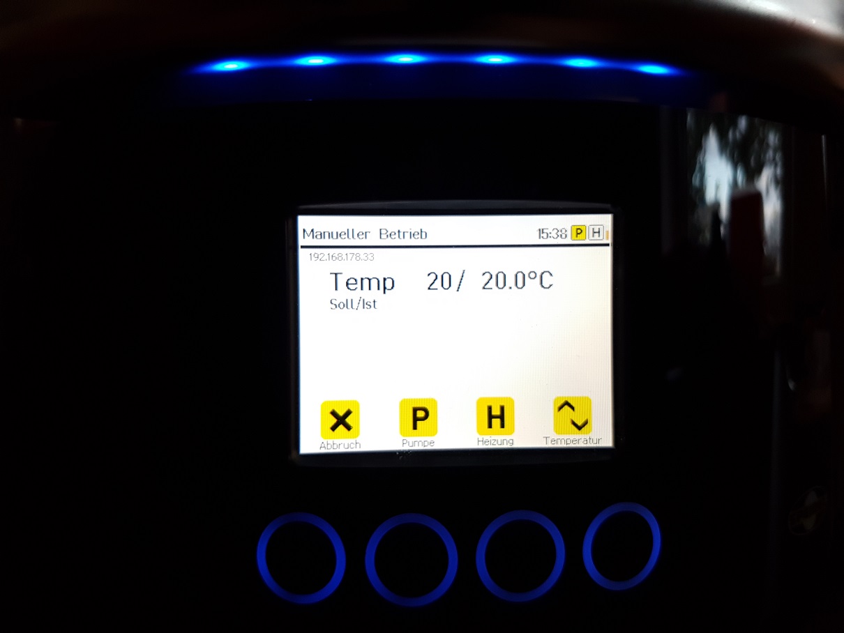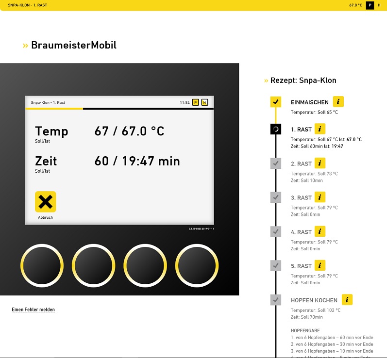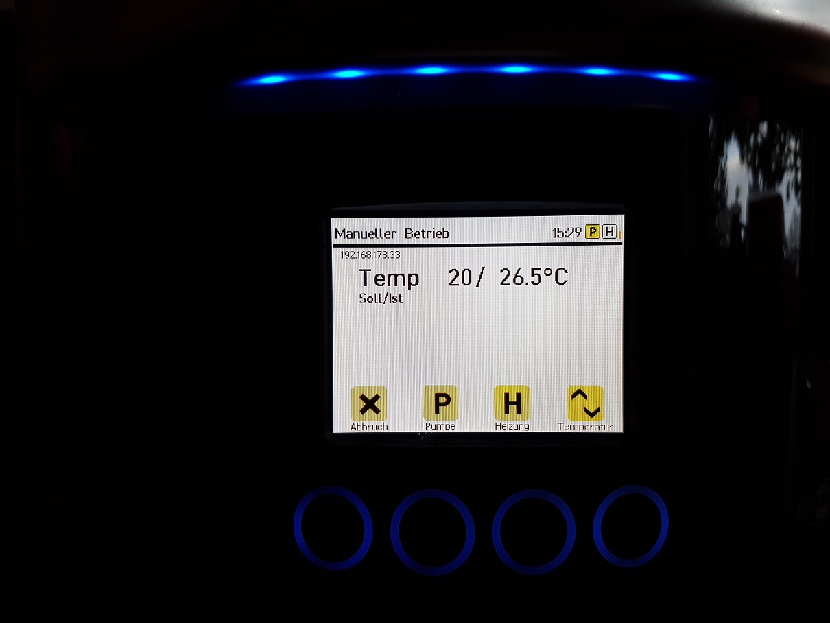 Das Abfallen der Temperatur beim Einmaischen habe ich mal durch bewusstes manuelles erhöhen der Temperatur um 2 Grad ausgeglichen. Eingemaischt und dann das Programm gestartet. Dann läuft halt erst unnötigerweise das Entlüften, dafür war die Temperatur Punktlandung.