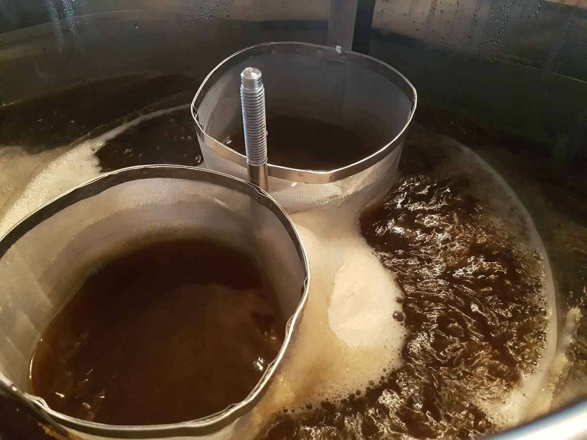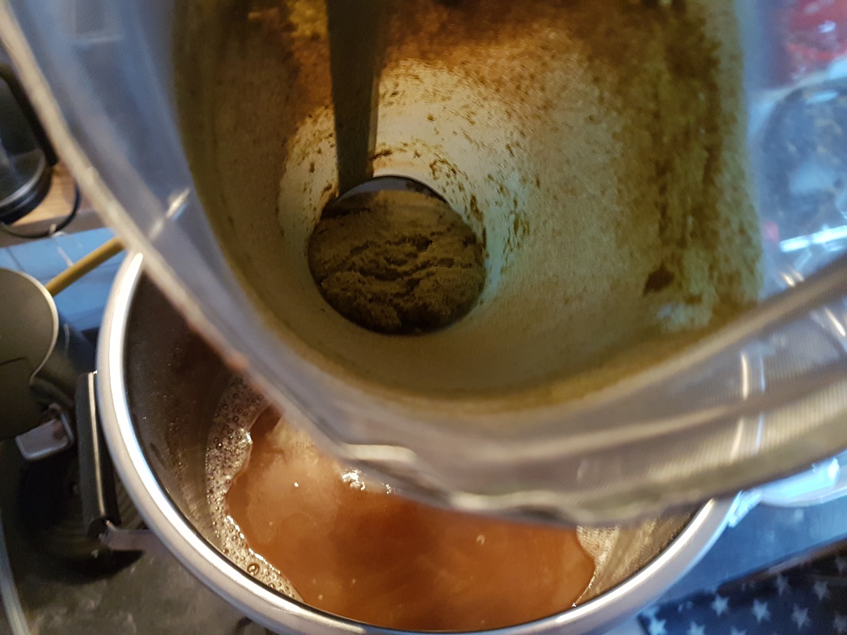Hopfenfilter nach weiteren 30 Minuten entnehmen (Whirlpoolhopfung 80g Cascade)