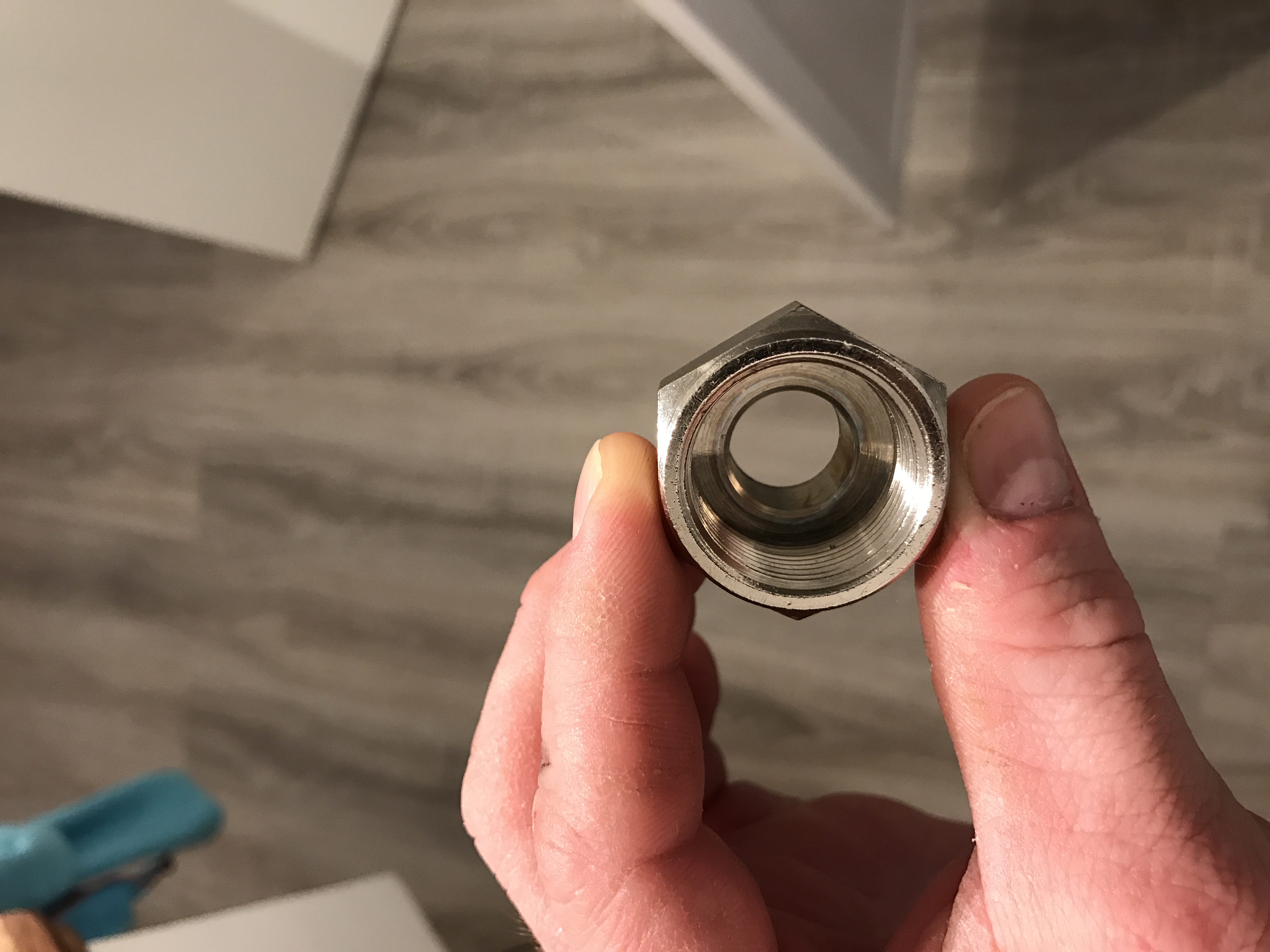 An der Innenseite ein Reduzierstück von 3/4 auf 1/2 damit die Läuterhexe (Läuterhexe war vorhanden) daran befestigt werden kann. :thumbup