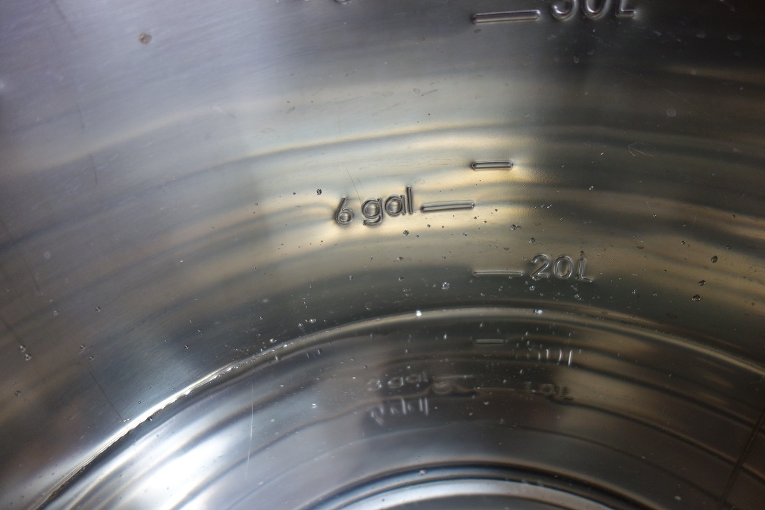 Hier sind 21 Liter Einmaischwasser drin: Randvoll passen in den Pott übrigens 40 Liter Wasser.