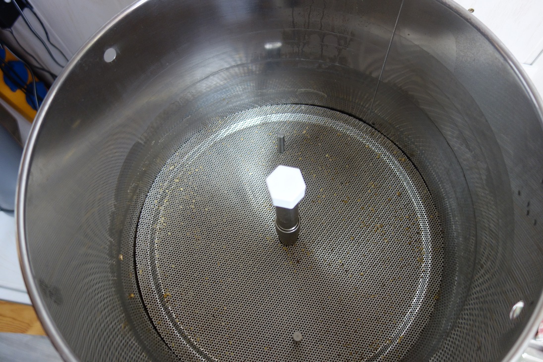 Hier mal ein Bild vom Programmschritt 3 Nach Erreichen 78°C kommt das Malzrohr nach oben. Die Vorderwürze läuft wie Wasser und bestätigt meine Optimierungsvermutung.