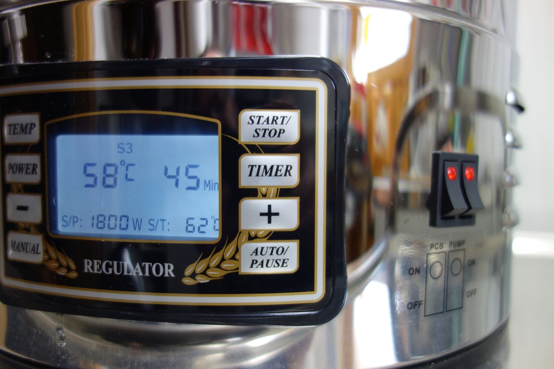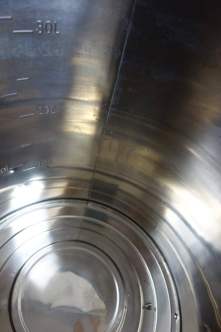 Hier sind 21 Liter Einmaischwasser drin: Randvoll passen in den Pott übrigens 40 Liter Wasser.