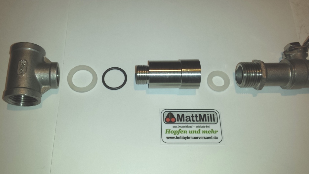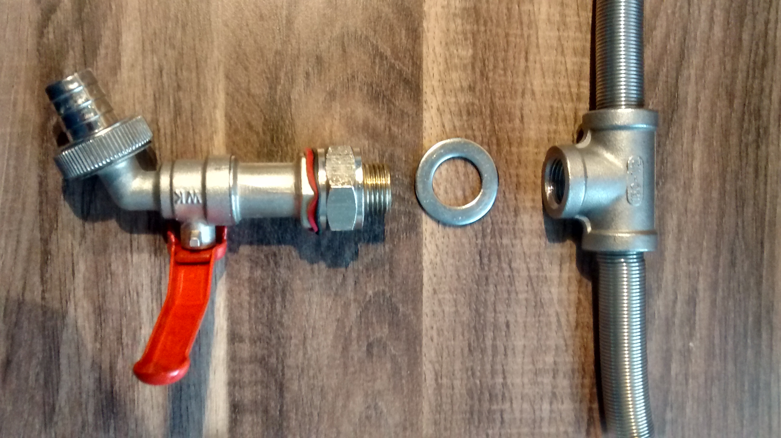 @Stefan: Du kannst auch die Lösung von http://www.brauhardware.de verwenden. Diese ist schon zigfach verkauft und hat sich bewährt. Alle Teile sind aus Edelstahl bzw. lebensmittelechtem Silikon. Der Preis inklusive Hahn beträgt 20,90 Euro. Wenn du die Läuterhexe schon hast, kannst du die Mutter gegen das T-Stück austauschen. Oder du nimmst einfach den Läuterfreund.