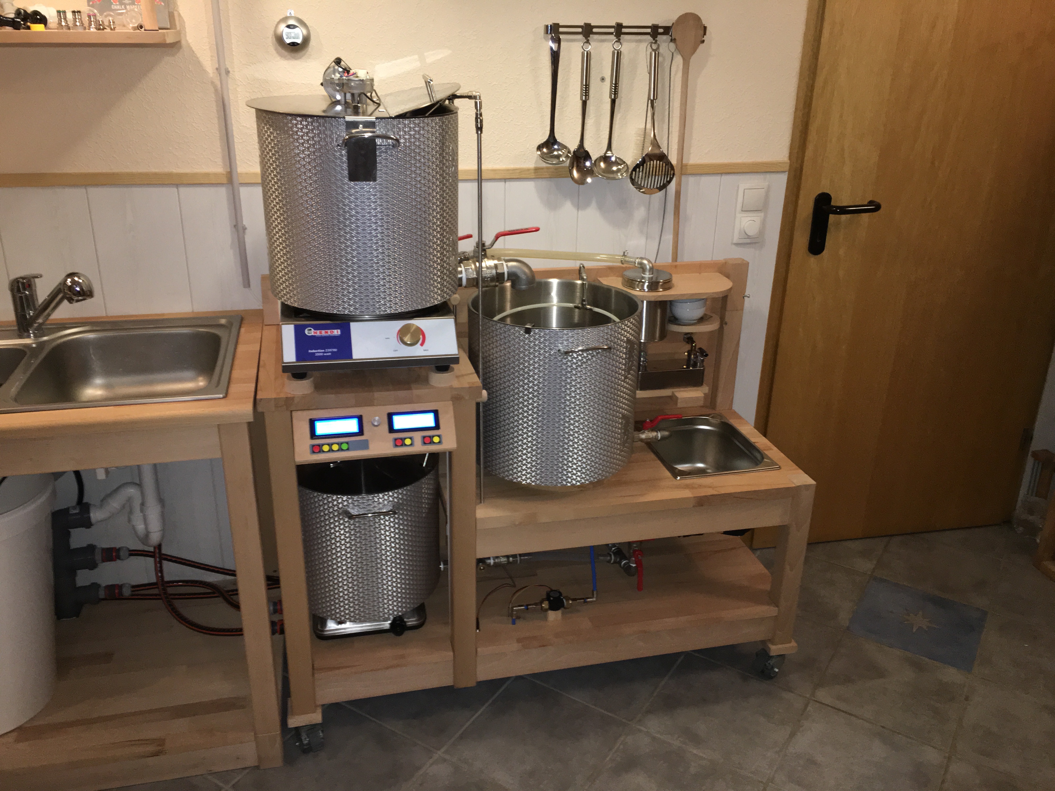 Das ist bei mir alles weniger kompliziert. Ich mache gewerblich hochwertige Frucht und Honigweine, und habe allerlei Geräte um massig Flaschen zu sterilisieren und Flaschenetiketten und Design sind kein Problem. In meinem Heimatort (150 Personen), sowie in meiner Familie und vor allem bei mir wird alles alt, aber nicht das Bier ;-). Bleibe erstmal bei obergärig, um den Anfang nicht all zu kompliziert zu gestalten. Klar kann man Wein machen und Bier herstellen de facto nicht wirklich vergleichen, aber es ist schon ein Grundverstand für Gärung, Hefe, Sterilität, Sauberkeit und Umgang mit Lebensmitteln und Geräten betreffend Zucker, Alkohol und eine Produktionsküche für mich allein vorhanden. Ahja, Nachgüsse dann mit Einkocher.