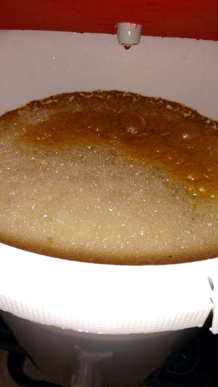 Nach 18 Std. war die Würze mit dem ersten Hefepack schon ordentlich am Überweißen.